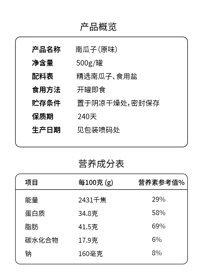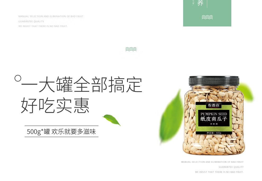 农香森 原味南瓜子500g罐装盐焗炒货原味多味纸皮南瓜籽孕妇零食