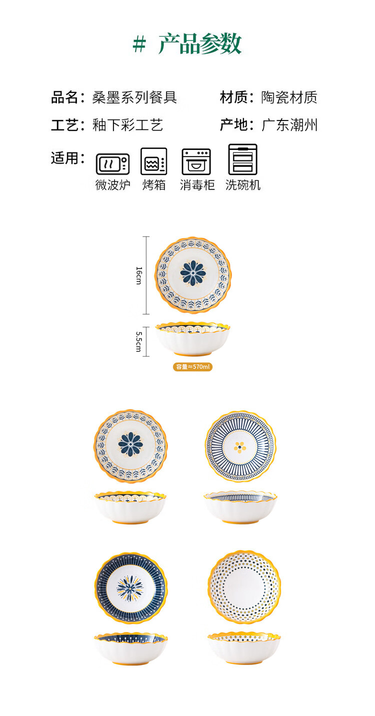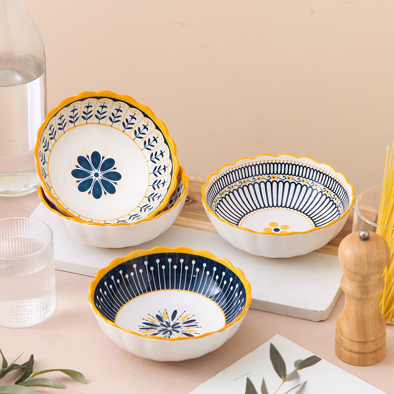 6.25英寸陶瓷碗家用拉面 面泡面 面碗饭碗沙拉碗高颜值米饭碗釉下 6.25寸-绚丽多彩