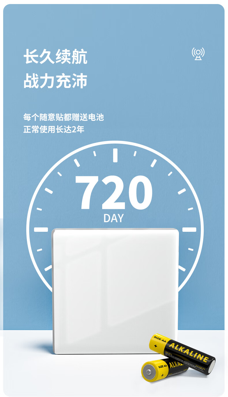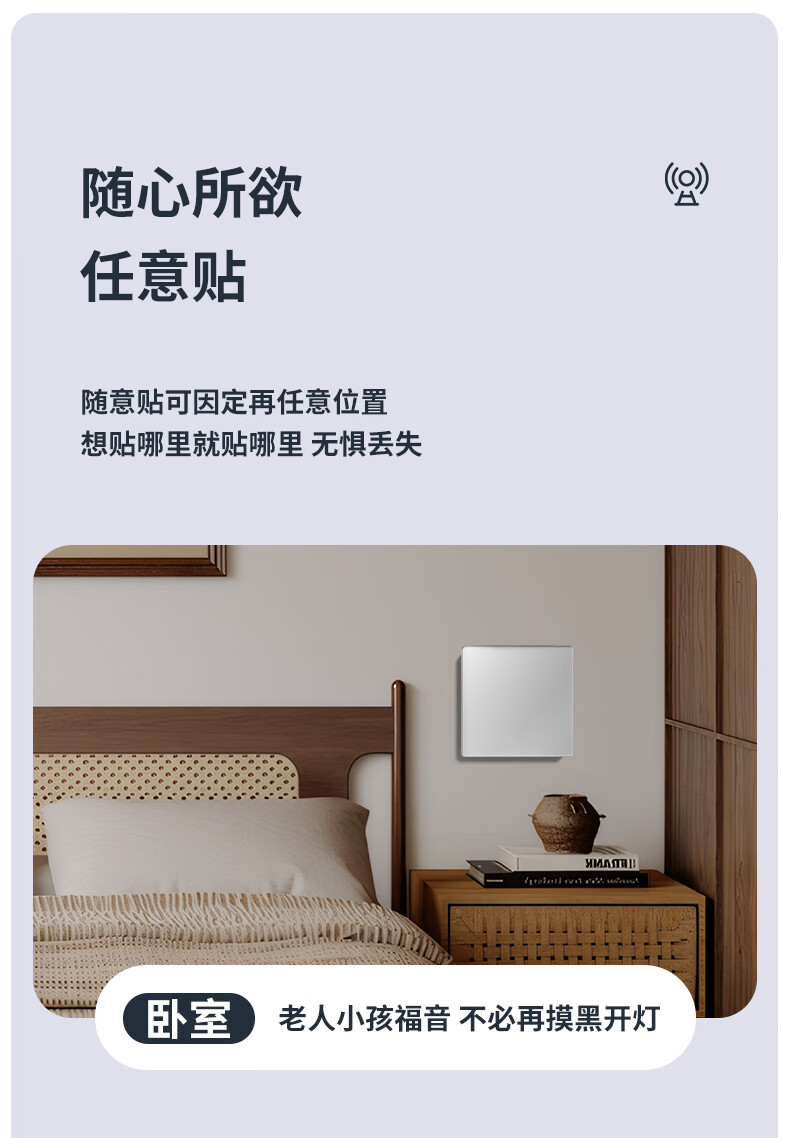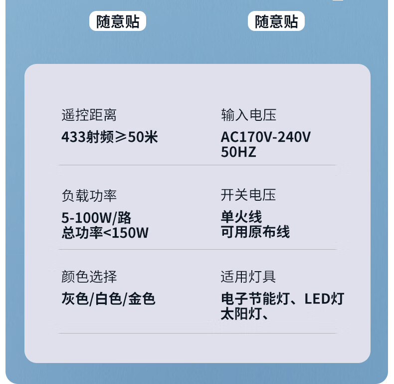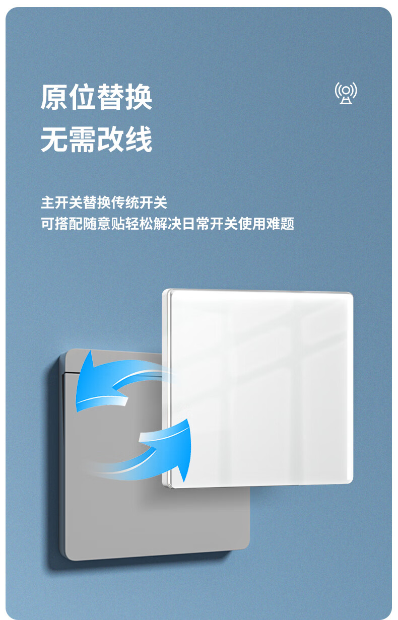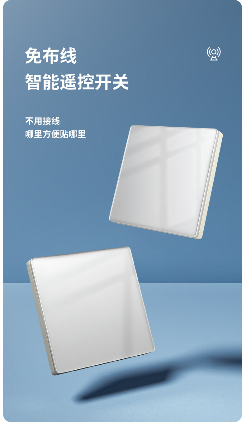 奥克斯卧室床头钢化玻璃无线遥控开关220v灯智能面板双控随意贴免布线 玻璃白-一开套装