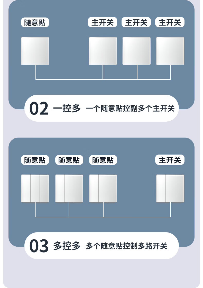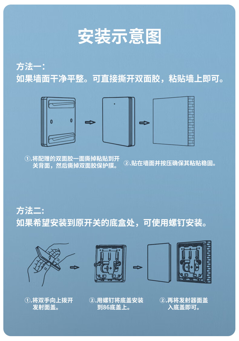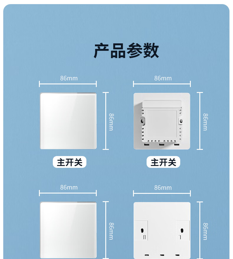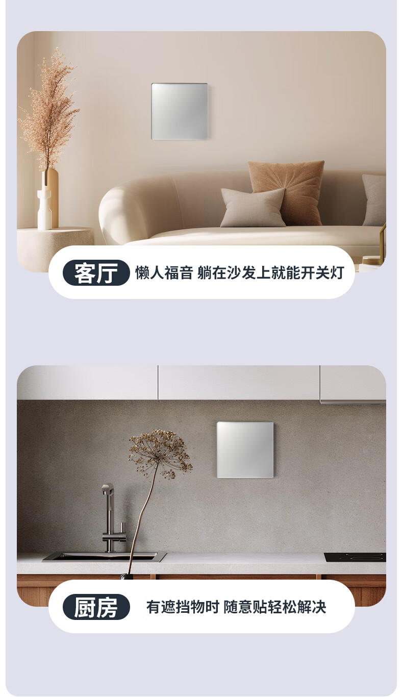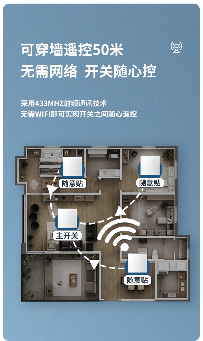 奥克斯卧室床头钢化玻璃无线遥控开关220v灯智能面板双控随意贴免布线 玻璃白-一开套装