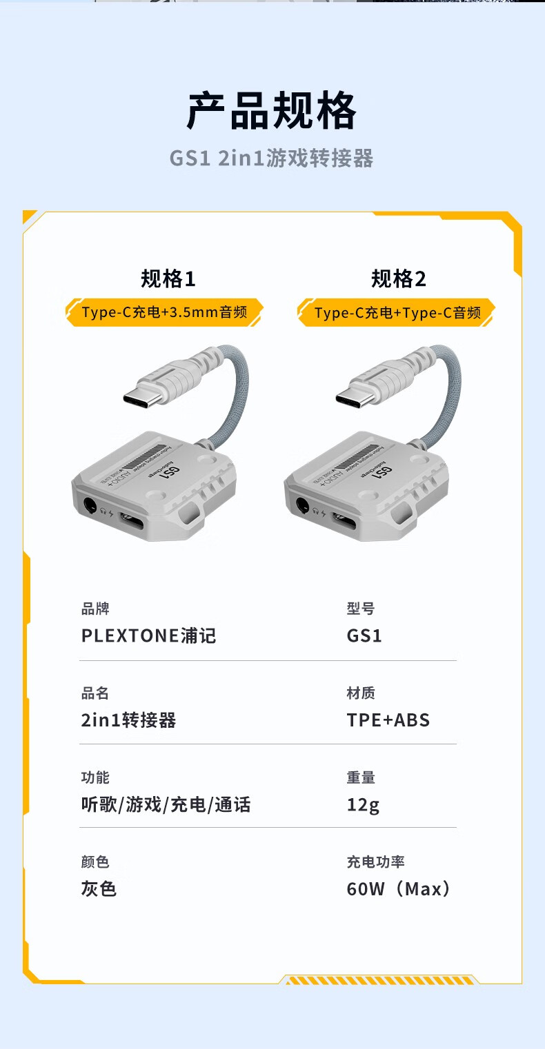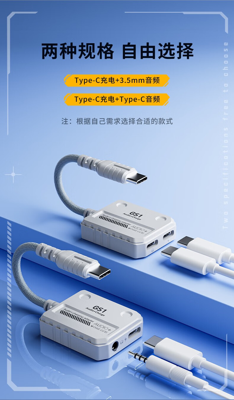 浦记GS1转接器typec耳机转换头iPadPro平板适用苹果15快充电吃鸡开麦 浦记GS1赛博版【Type-C+Type-C】