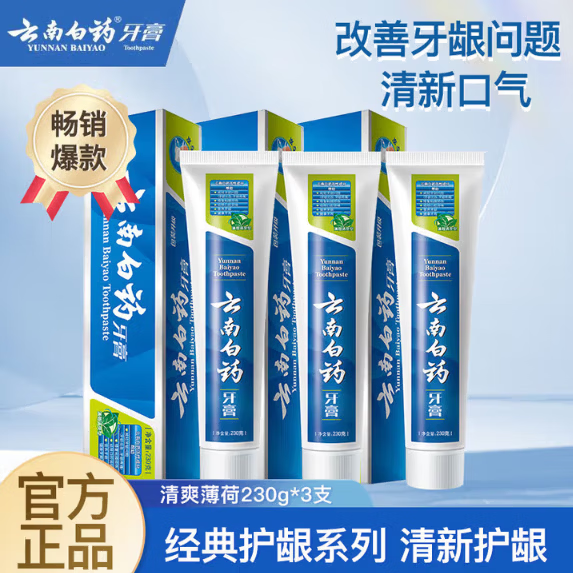白药云南白药牙膏清新口气温和护齿减轻牙垢牙渍护理缓解牙齿敏感家庭 薄荷两支+留兰香两支