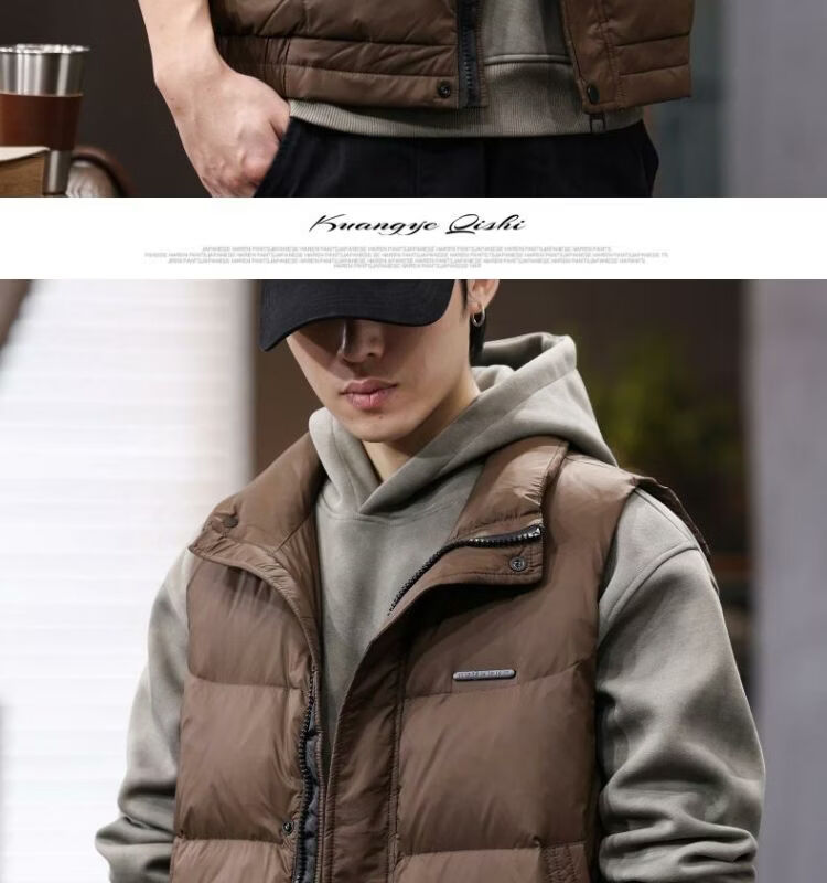 波司登冰洁美式复古羽绒马甲男2024冬季款保暖羽绒服男士潮牌轻薄 咖啡色 2XL(155-170斤)
