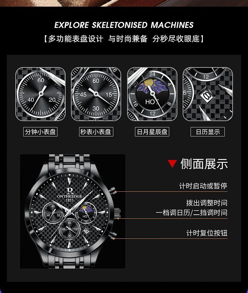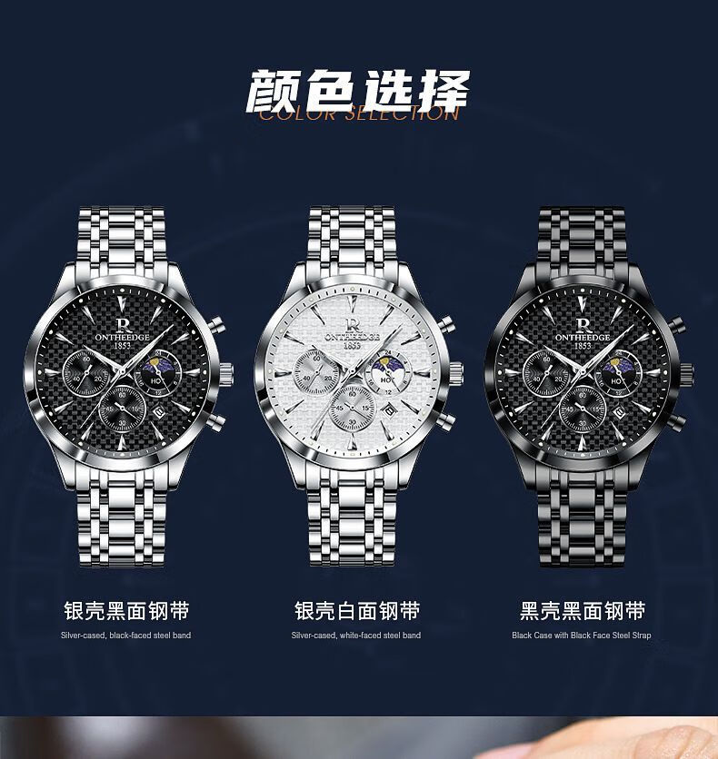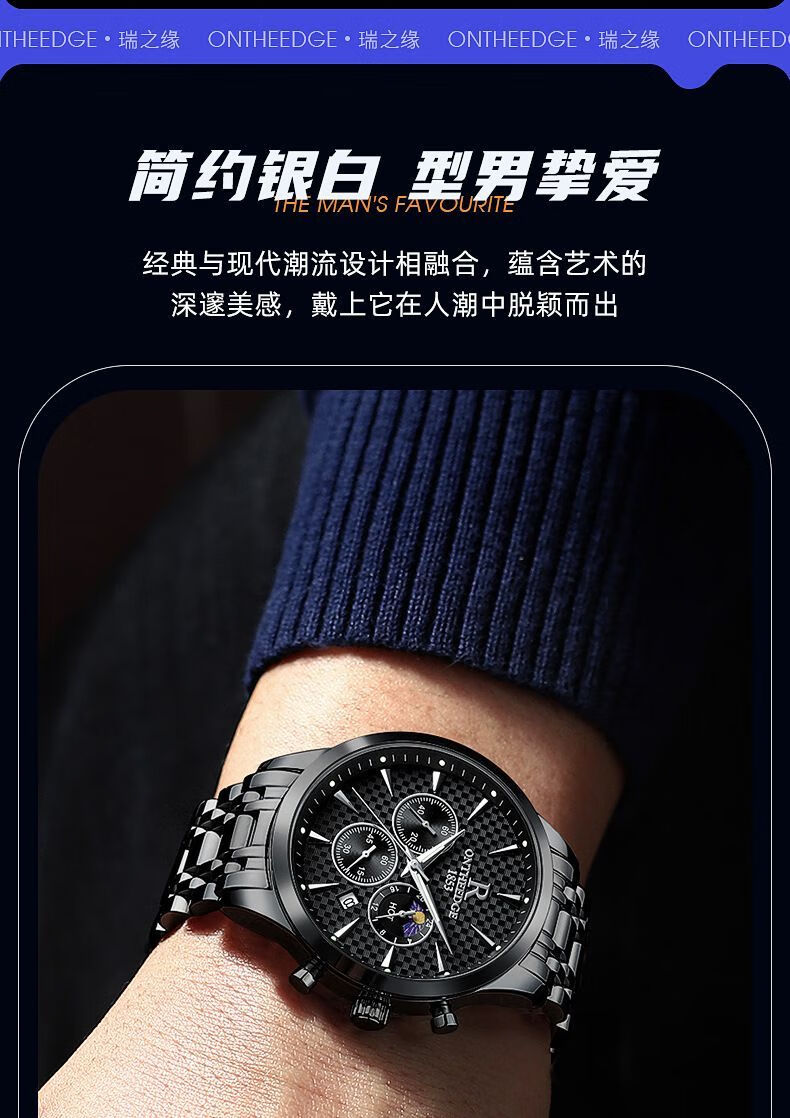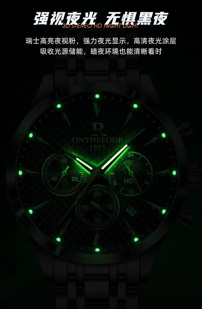瑞之缘瑞士名表男士手表自动多功能手表男名牌真品高档帅气防水潮款男表 新升级版8-高档礼盒-银白钢