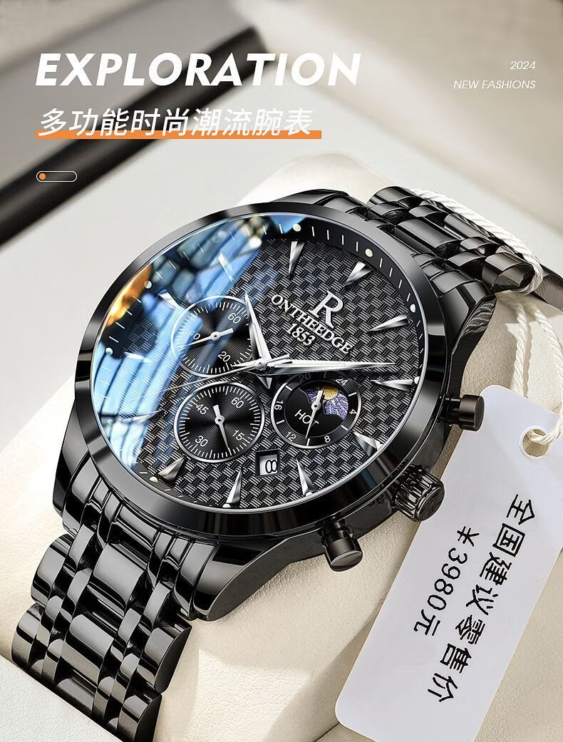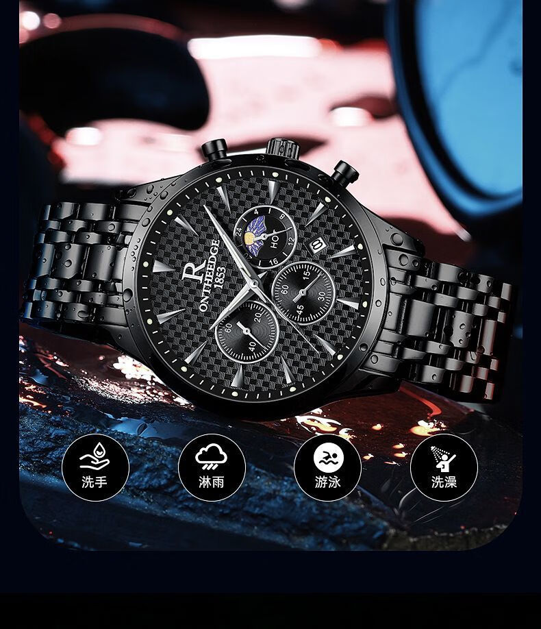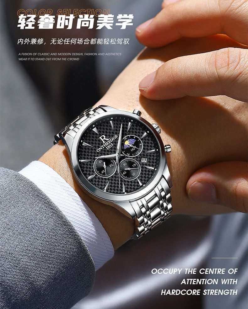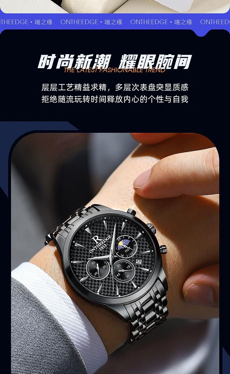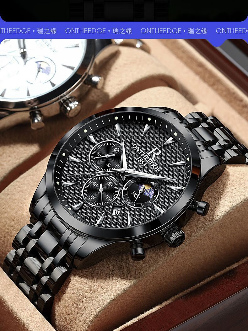 瑞之缘新款瑞士名牌手表男士自动月相大师夜光防水腕表高档品质帅气男表 新升级版8-银黑钢【送高档表盒+