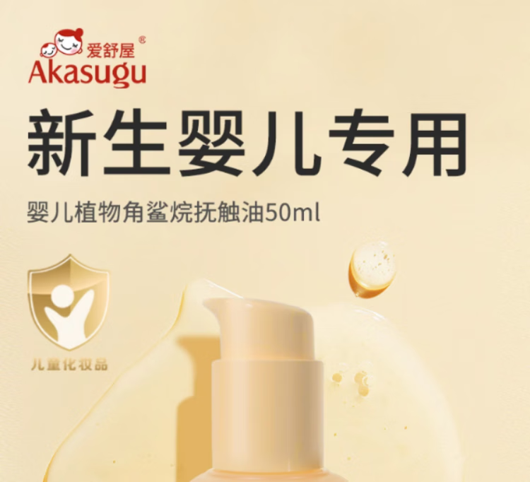 Akasugu爱舒屋新生婴儿抚触油50ml宝宝专用全身按摩精油角鲨烷润肤油 婴儿角鲨烷抚触油50g