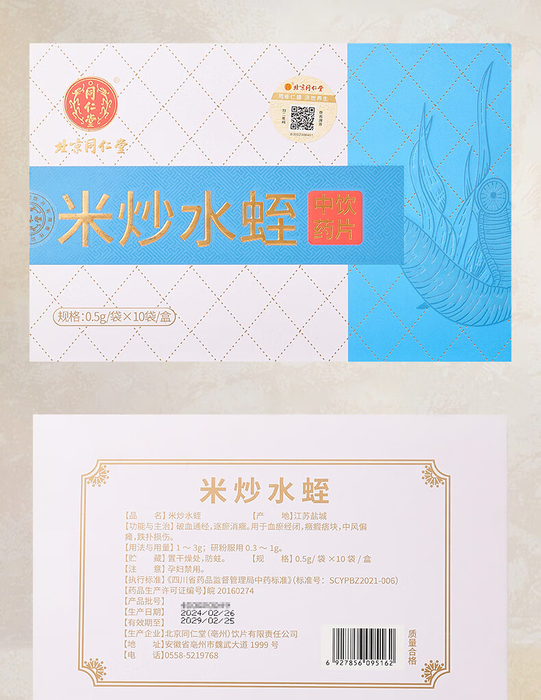 北京同仁堂 米炒水蛭粉中药材 破血通经逐瘀消癥用于血瘀经闭癥痕痞块中风偏瘫跌扑损伤 官方旗舰店正品 【3盒实惠装】0.5g*10袋 单盒128