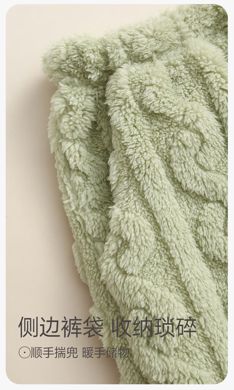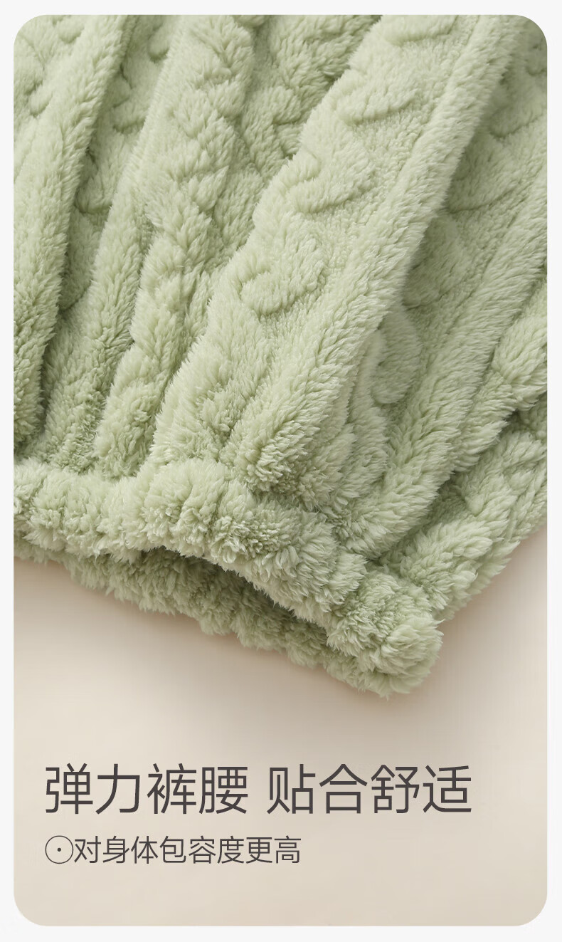 芬腾珊瑚绒睡衣女秋冬加厚保暖加绒休闲大码宽松可爱套头家居服套装 草绿 M 建议90-110斤