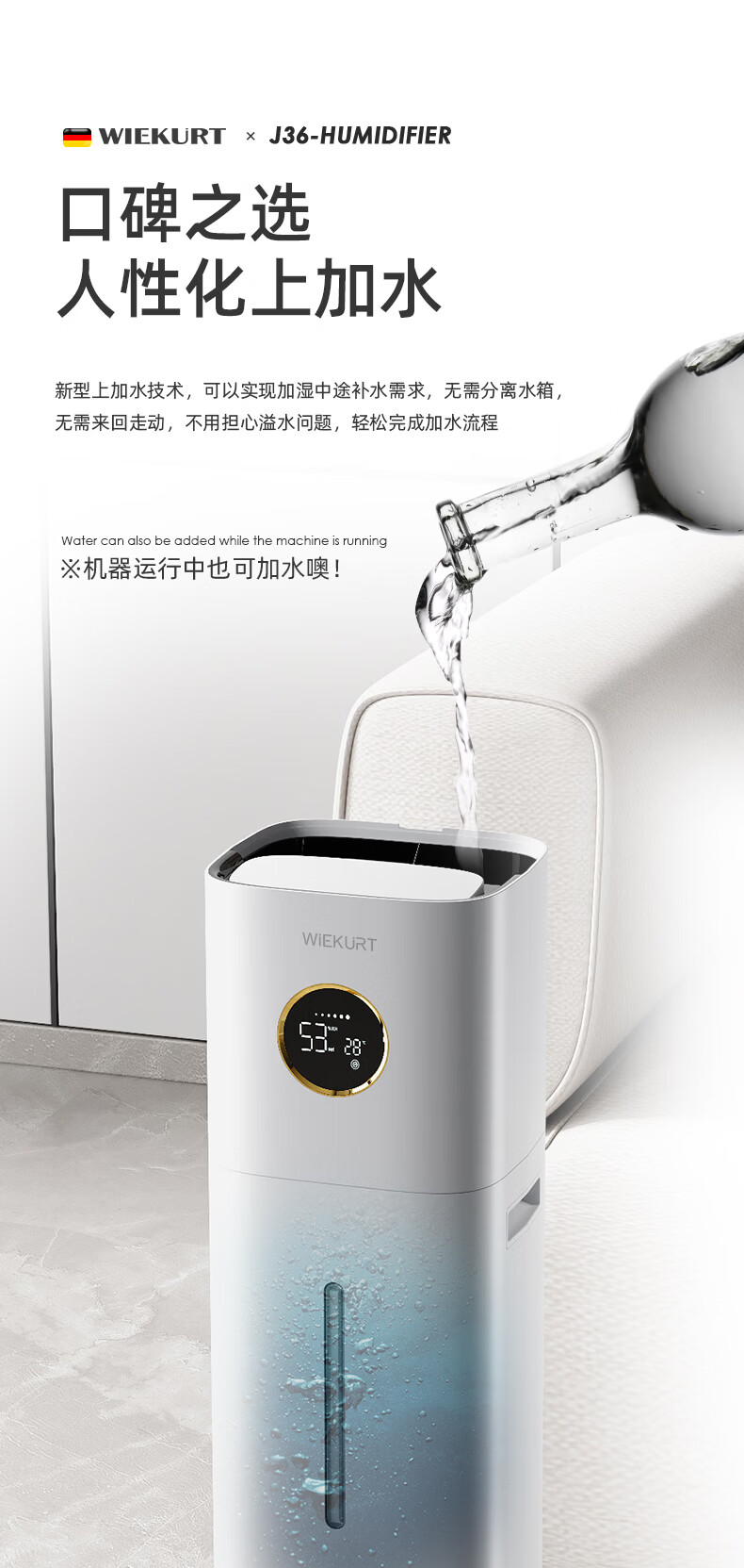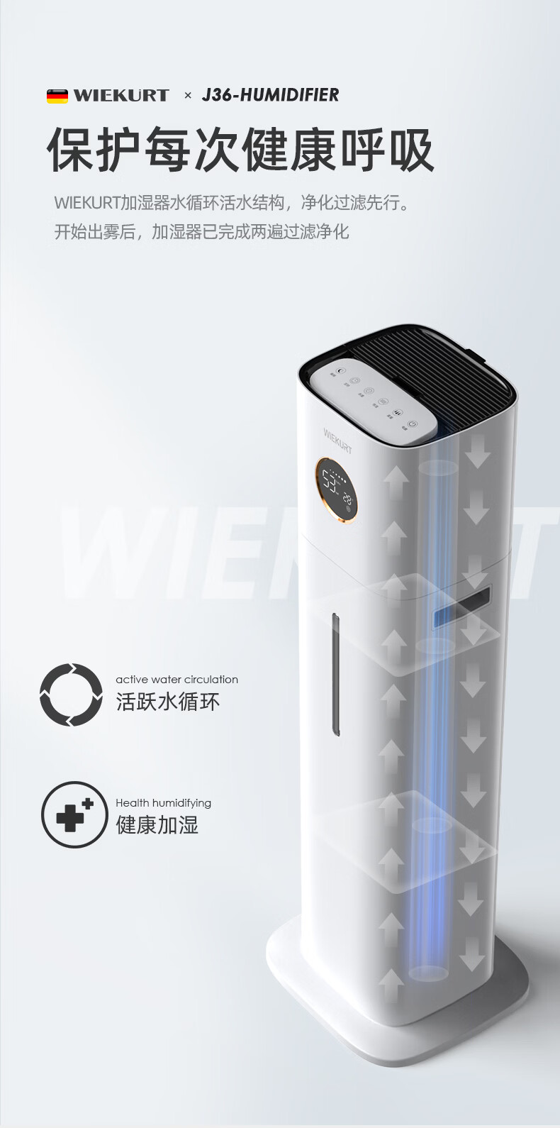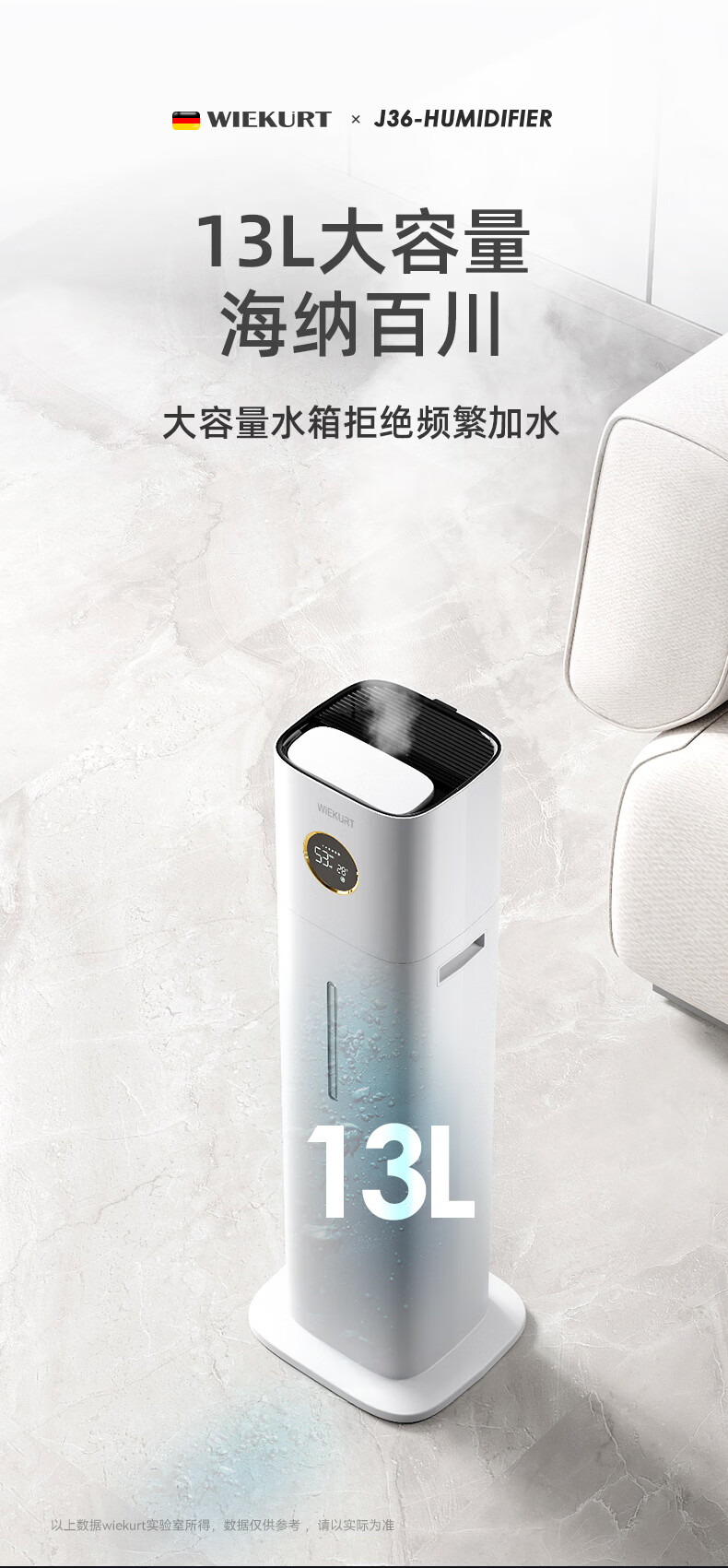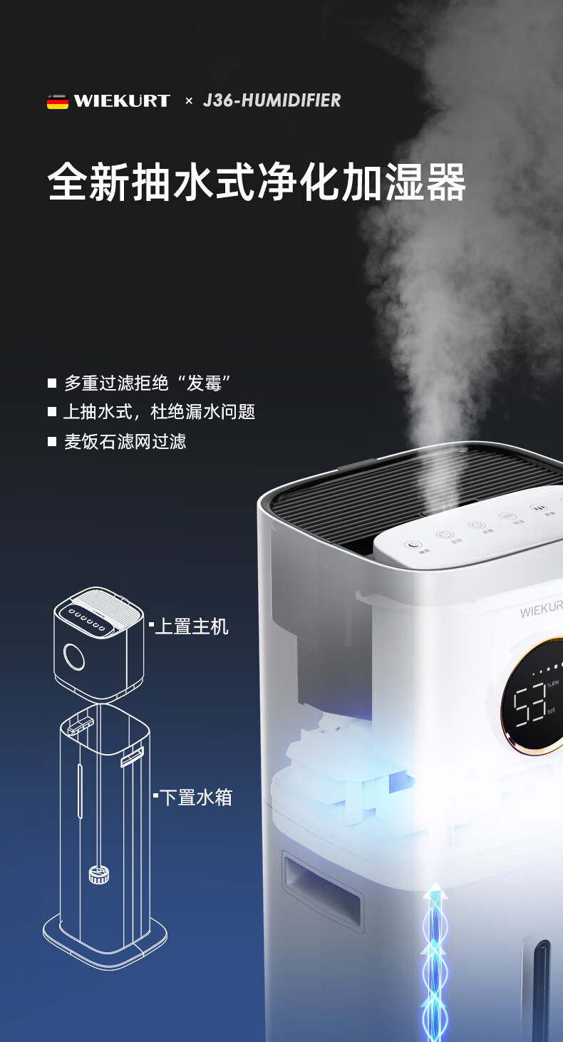 WIEKURT新款德国大容量落地式加湿器家用办公室静音孕妇婴儿净化加湿多合一 13Lwifi款