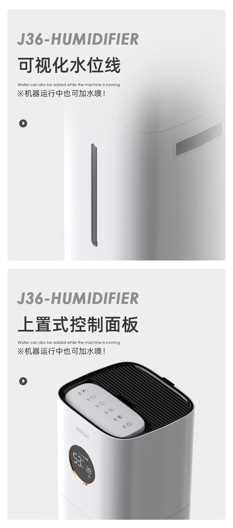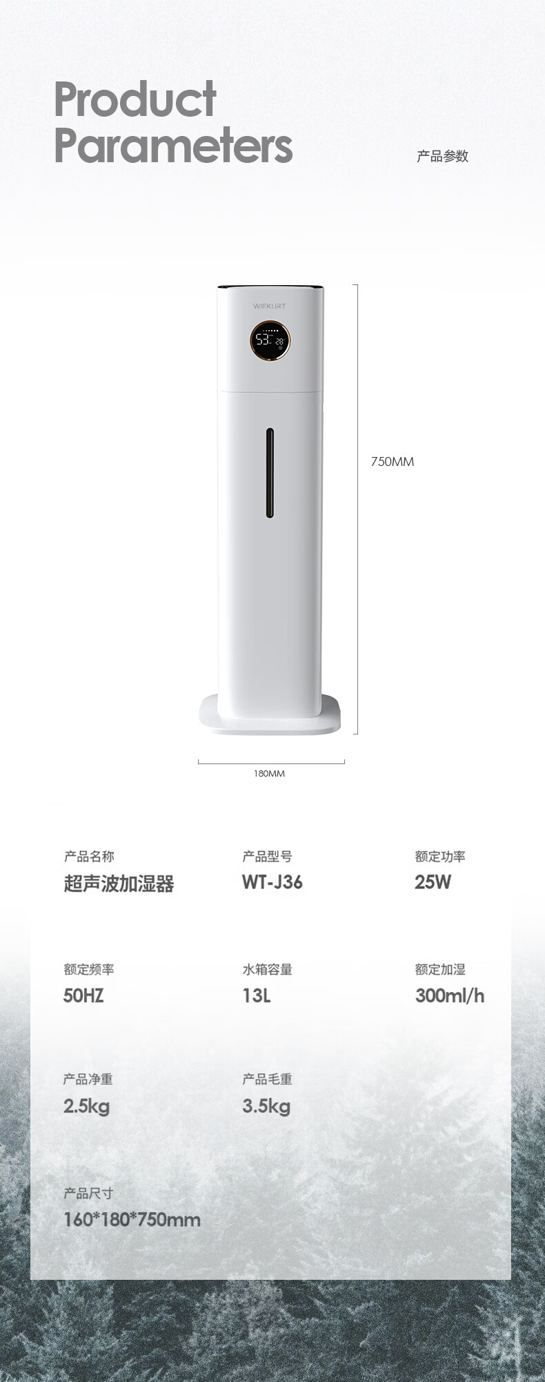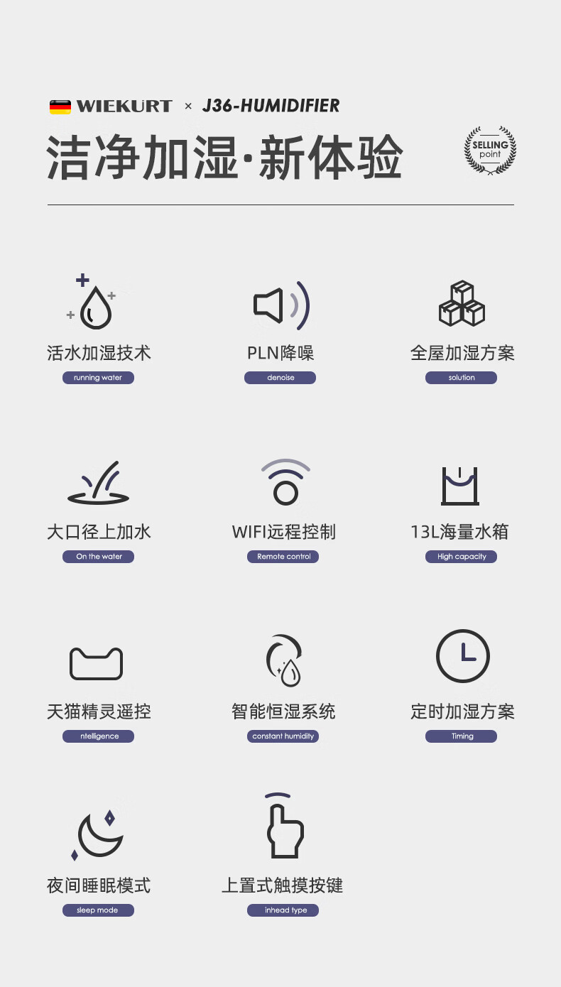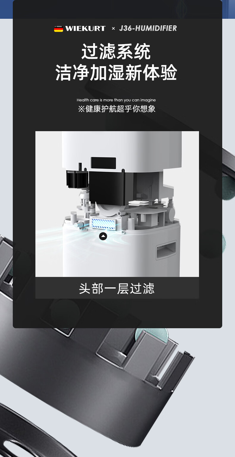 WIEKURT新款德国大容量落地式加湿器家用办公室静音孕妇婴儿净化加湿多合一 13Lwifi款