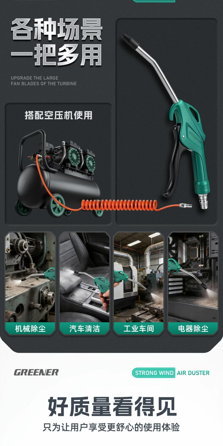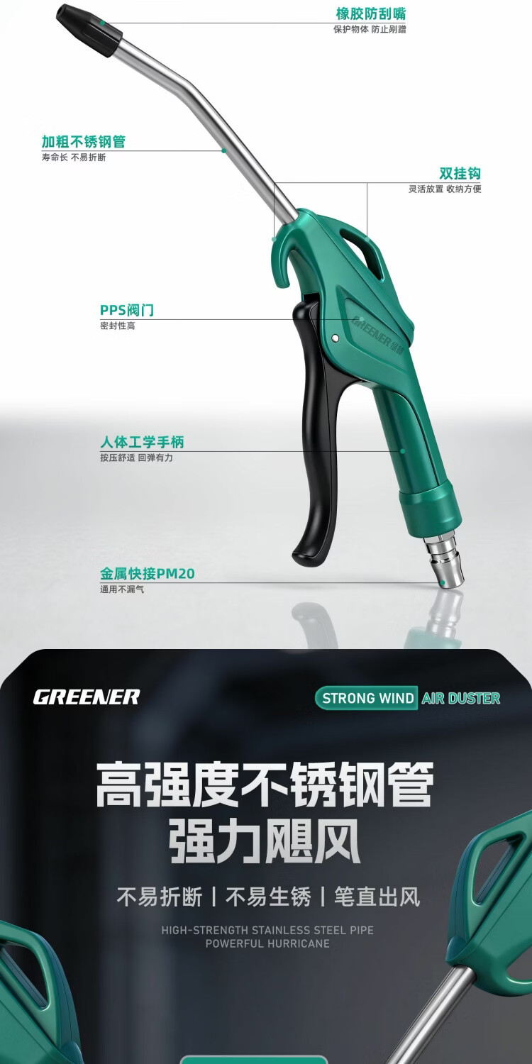 绿林吹尘枪气动高压气管气泵吹风强力喷枪大货车除尘吹灰工具 加长暴风款高压吹尘枪