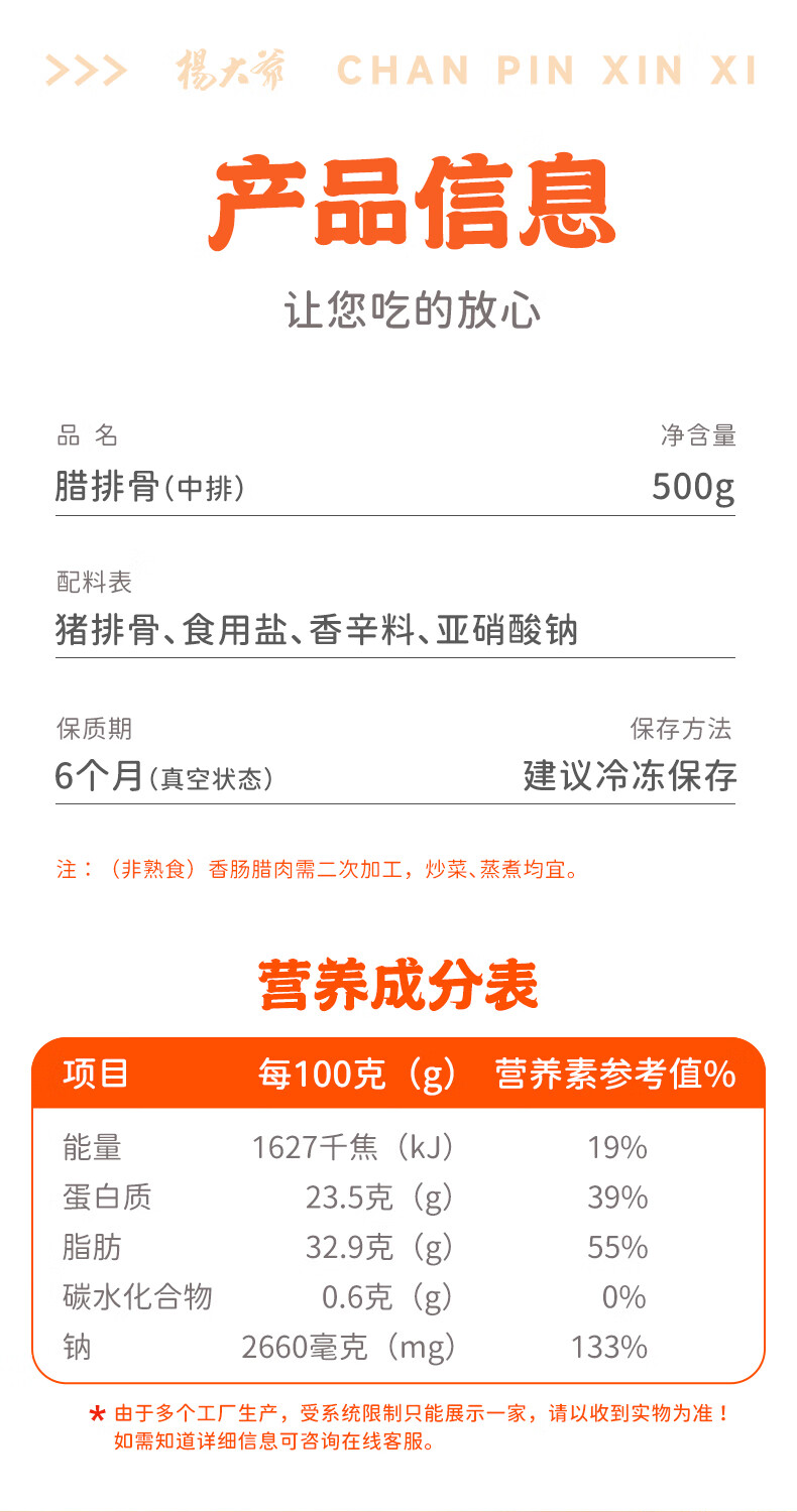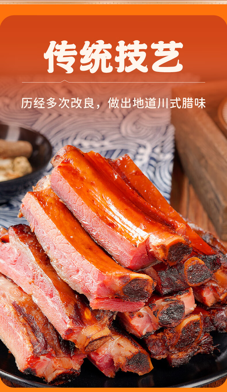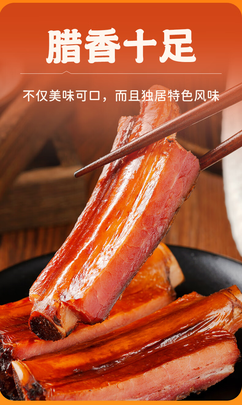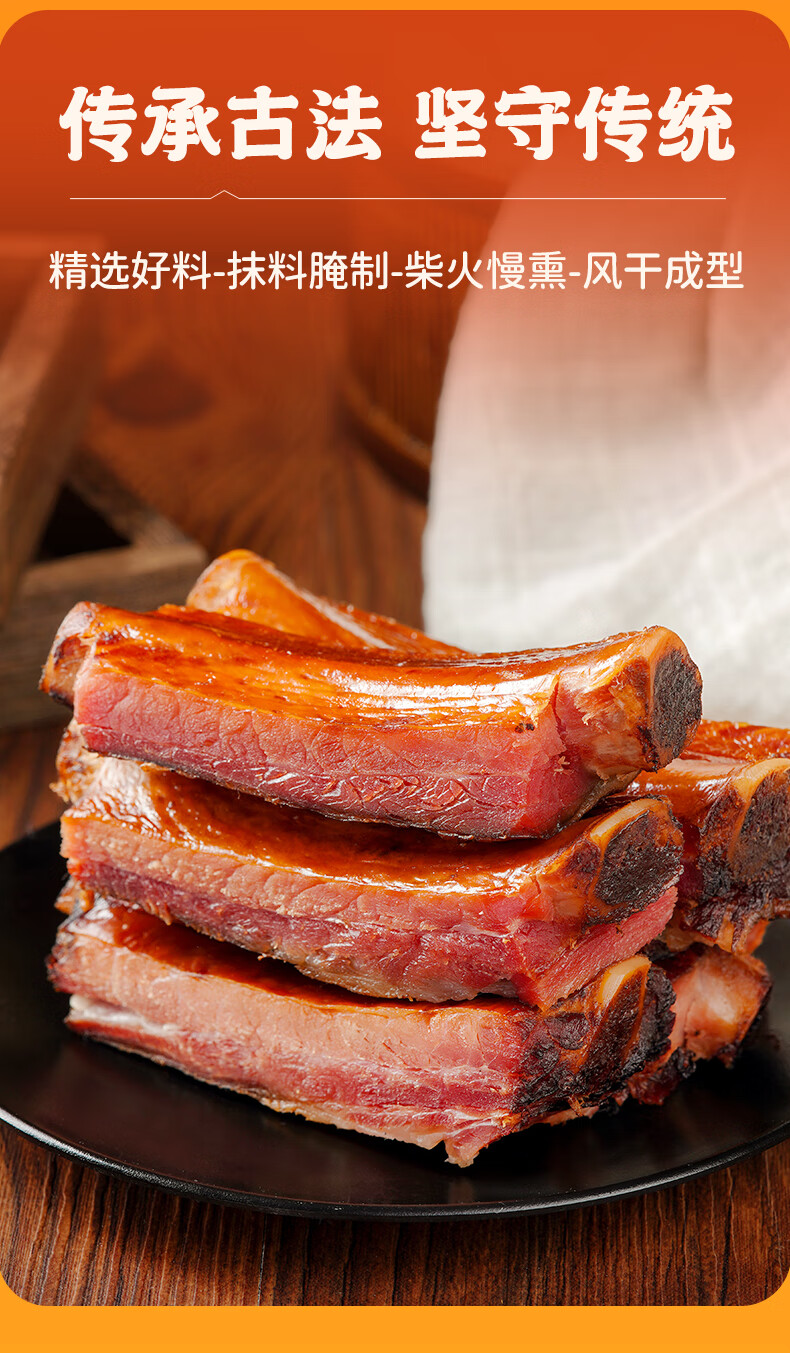 杨大爷烟熏腊猪排骨四川特产特色腊味肋排腊中排1斤装500g