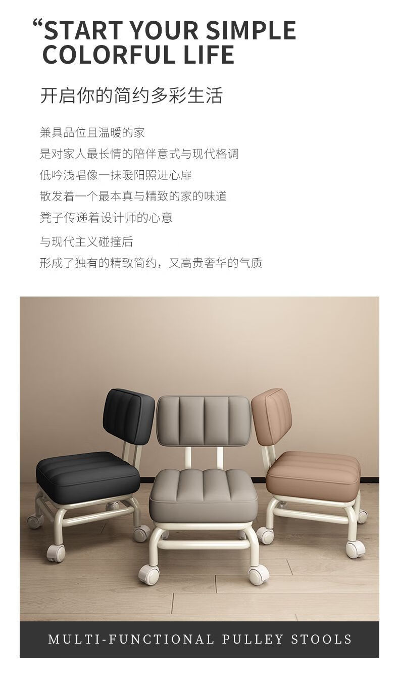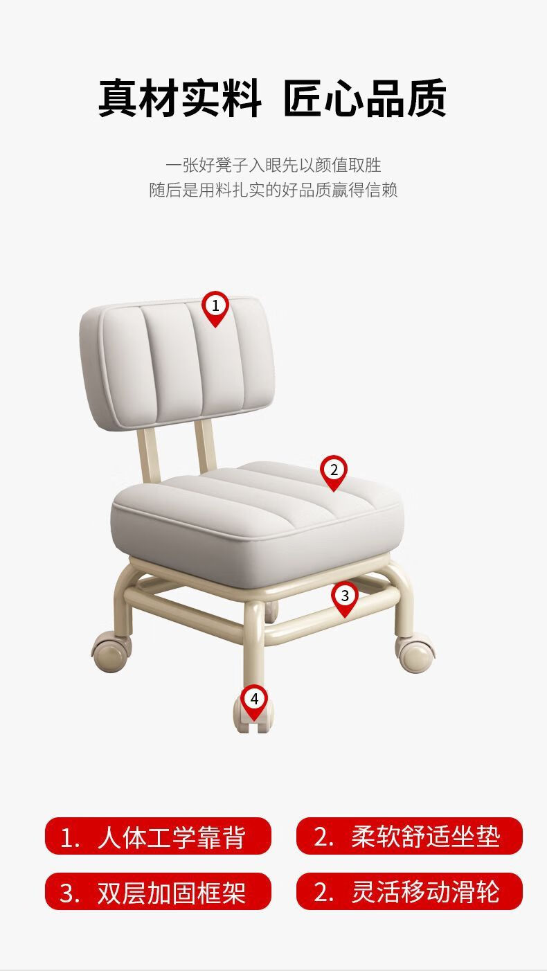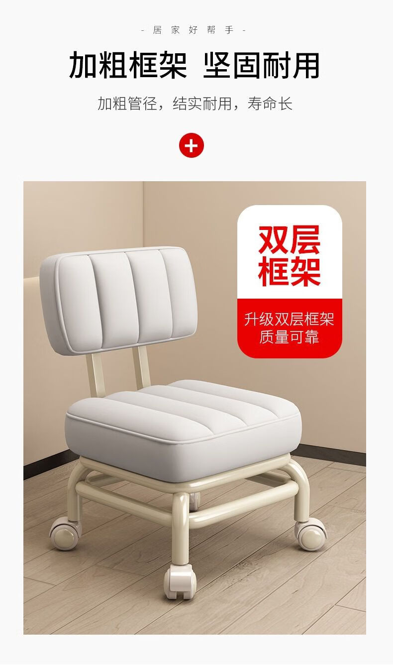 朵貌德国品质滑轮三层加固椅子矮凳万向轮小凳子带娃神器儿童靠背滑轮 三层加固更安全浅灰色(静音轮)