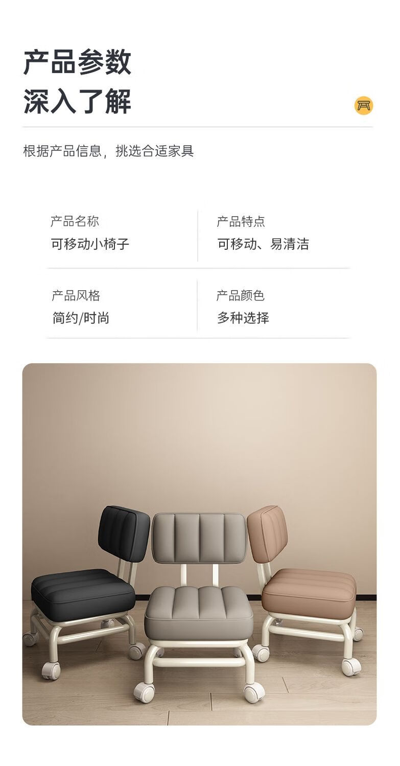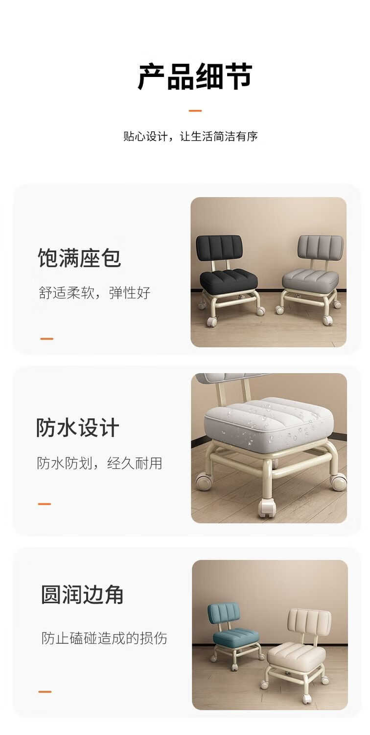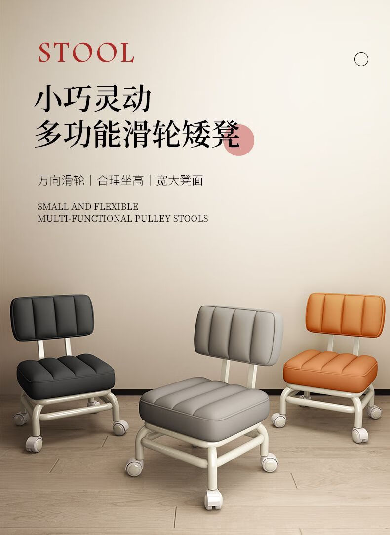 朵貌德国品质滑轮三层加固椅子矮凳万向轮小凳子带娃神器儿童靠背滑轮 三层加固更安全浅灰色(静音轮)