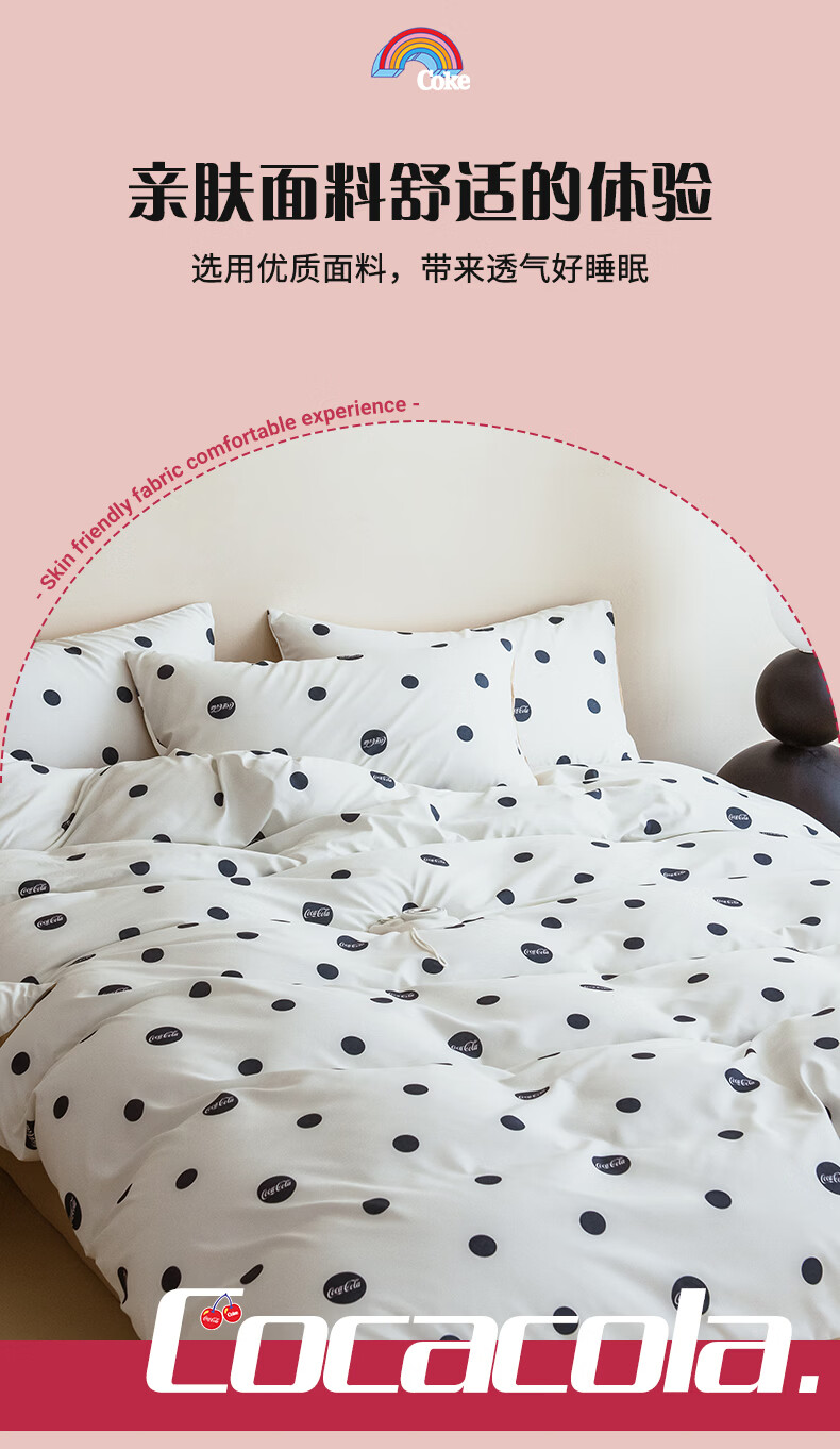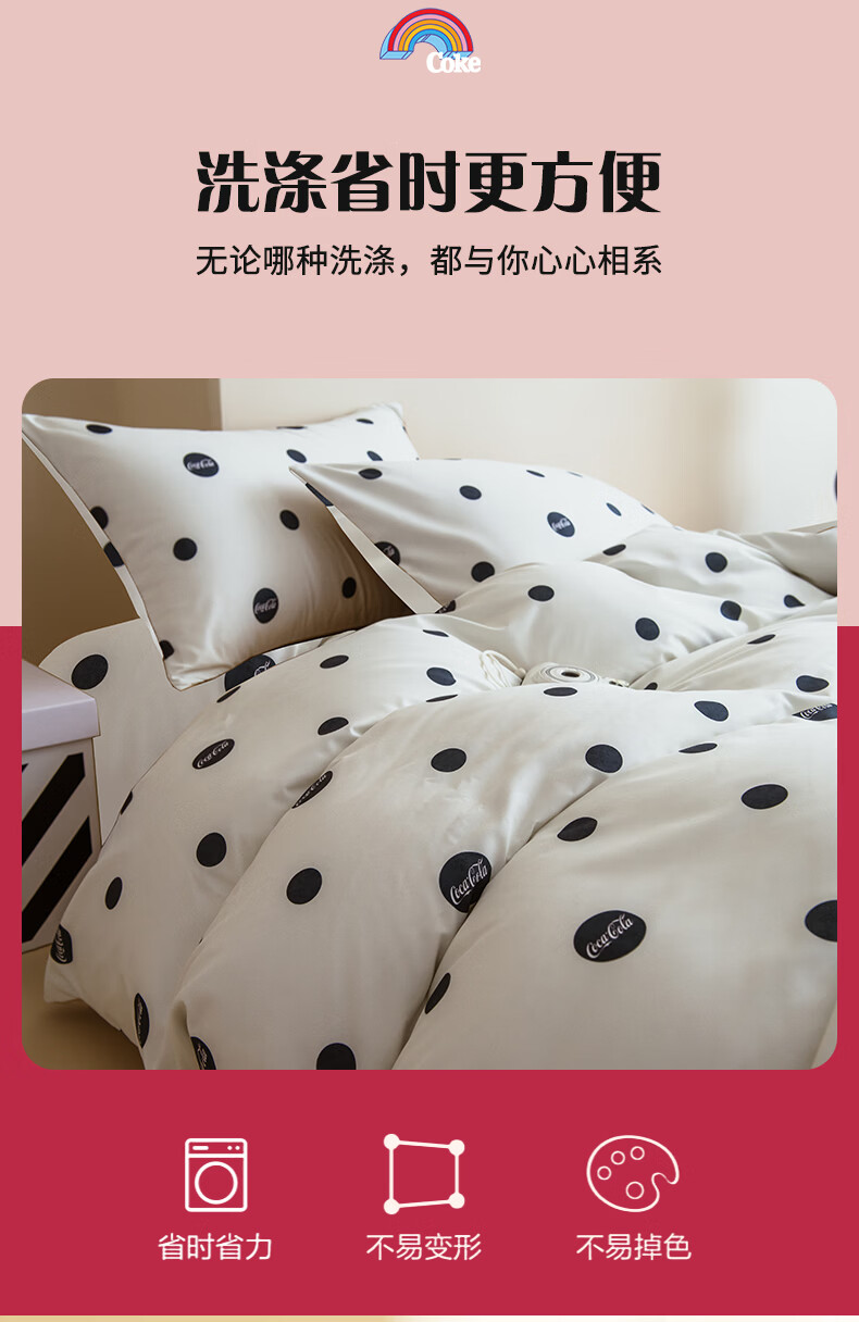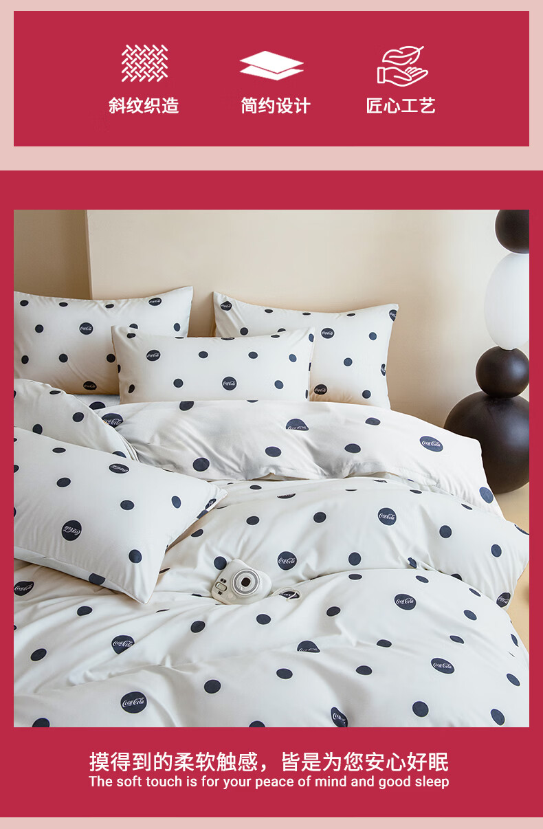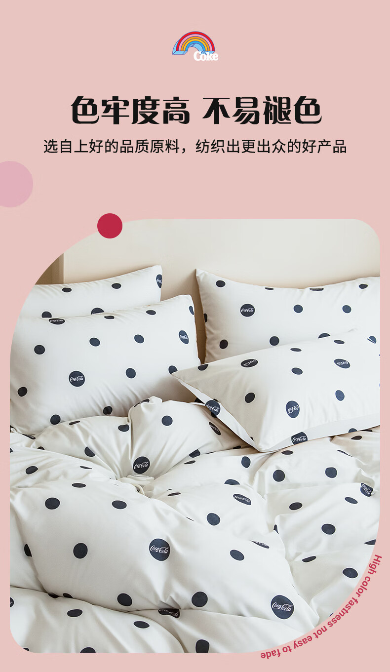 可口可乐四件套亲肤磨毛床上用品单双人宿舍床单被套套件 小波点黑 1.5/1.8床四件套 床单款 被套200*230cm