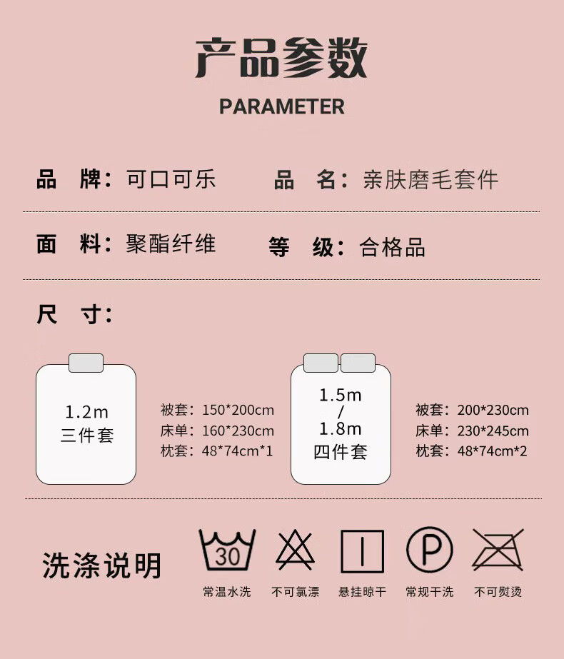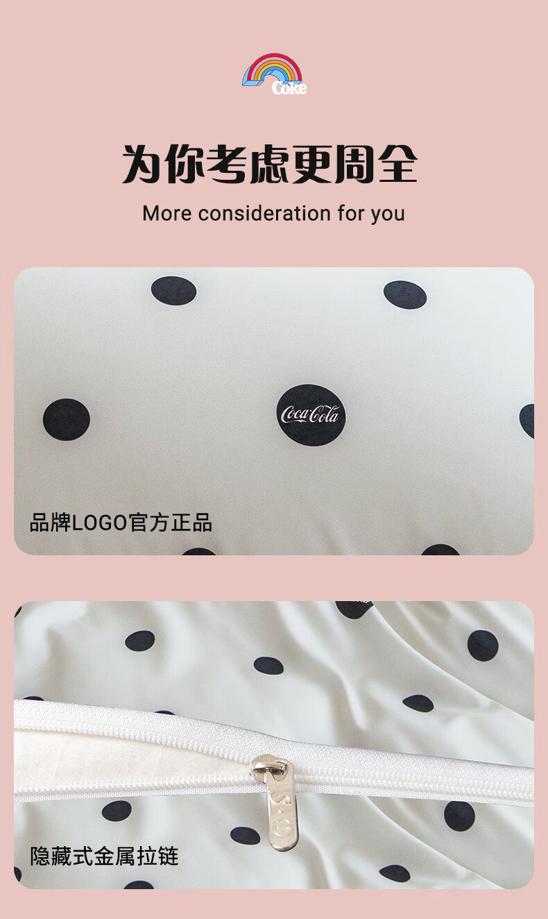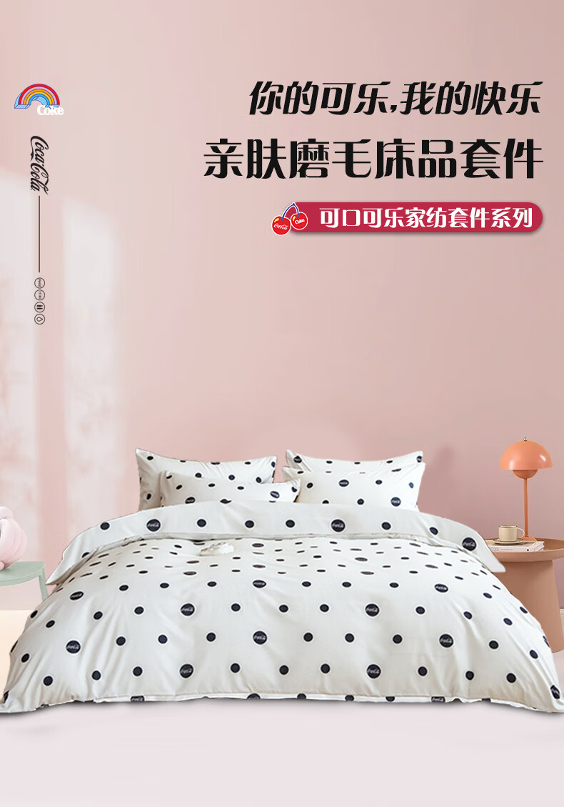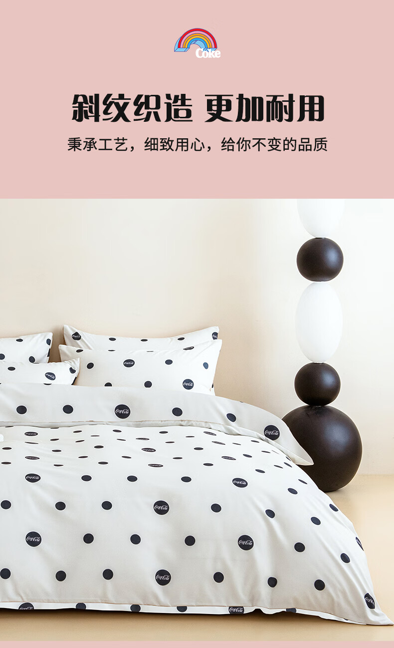 可口可乐四件套亲肤磨毛床上用品单双人宿舍床单被套套件 小波点黑 1.5/1.8床四件套 床单款 被套200*230cm