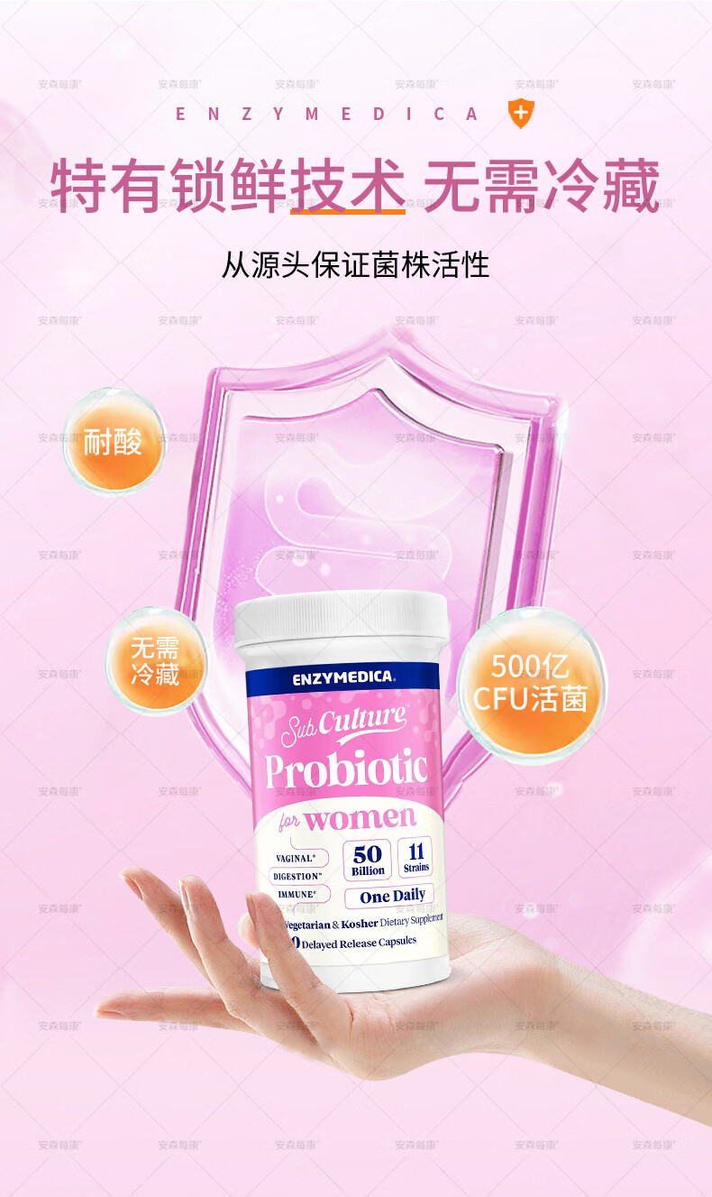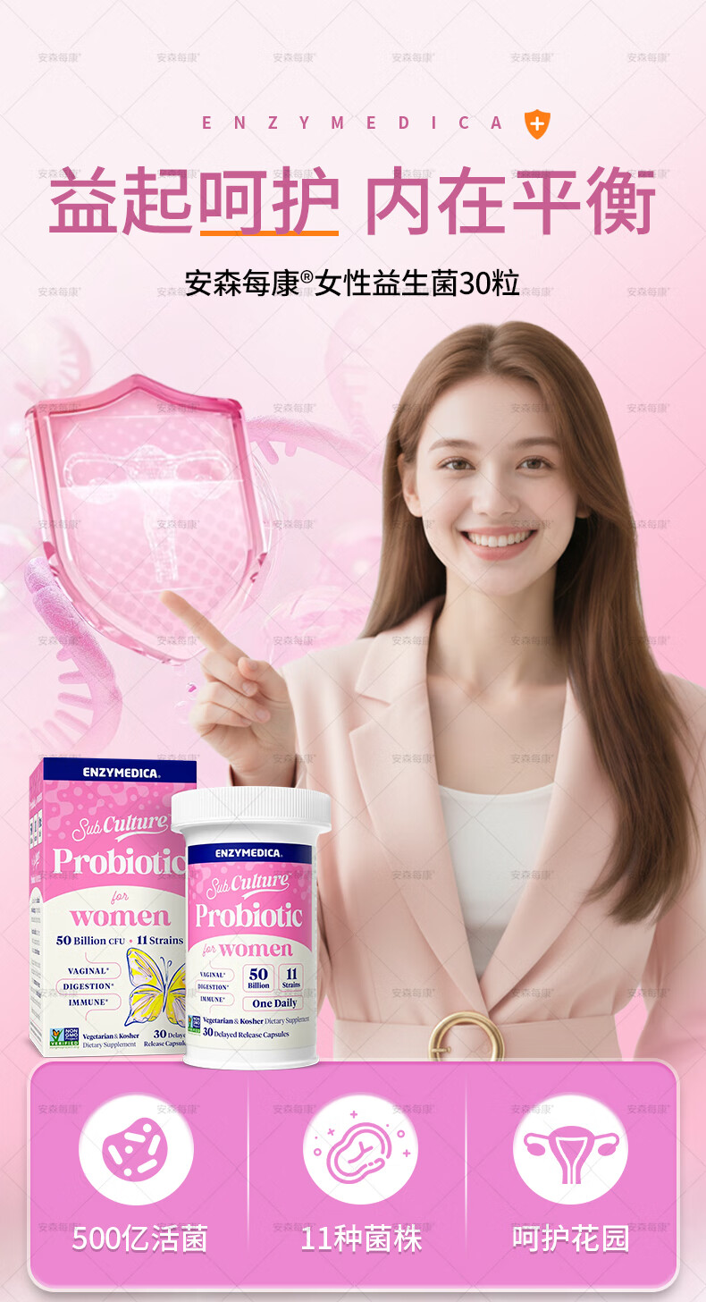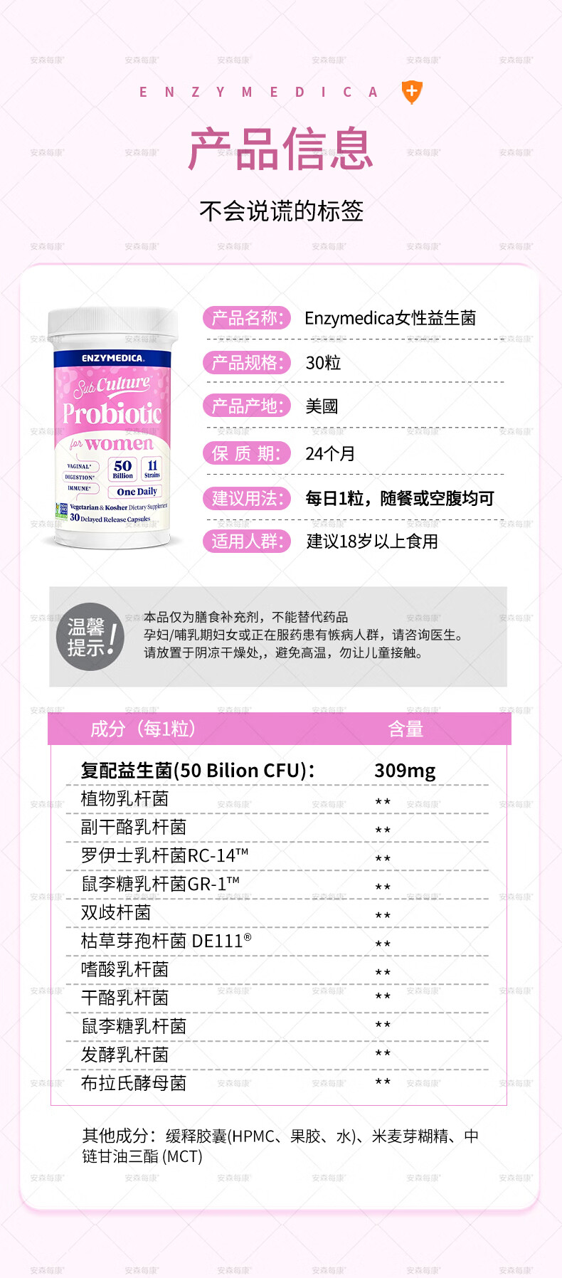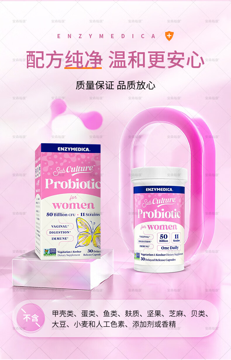 Enzymedica安森每康美国进口成人女性益生菌护理妇科健康调理菌群提高免疫力 500亿女性益生菌 30粒*1瓶