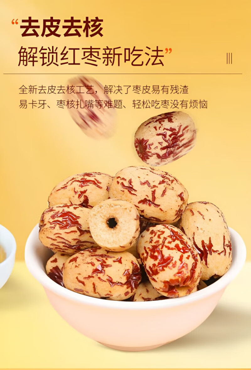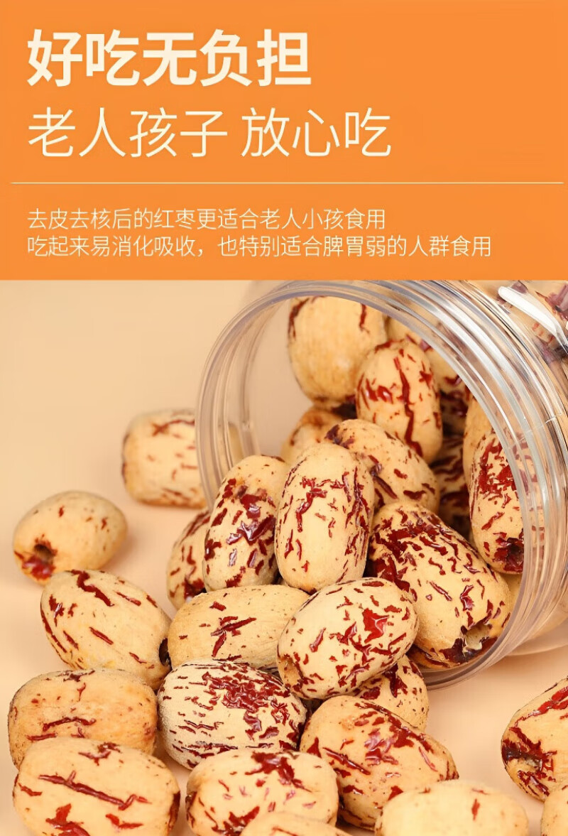 去皮去核红枣婴儿无添加辅食无核新疆灰枣免洗脱皮大枣煮粥煲汤 【免洗即食】去皮红枣500g 1罐