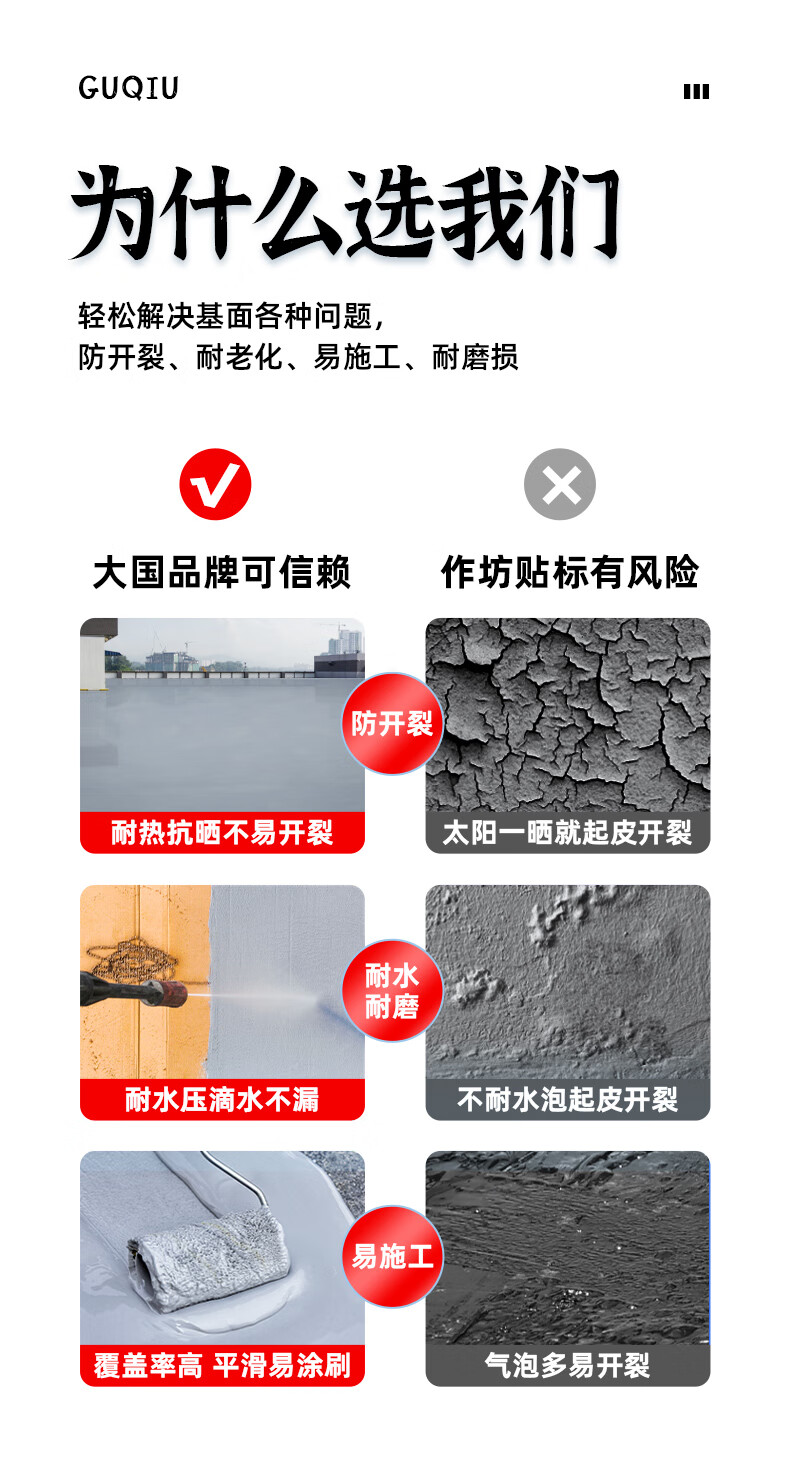 GUQIU油性天冬聚脲防水涂料室外屋顶橡胶补漏材料裂缝房楼顶漏水灌缝胶 高弹聚脲/国标油性 10kg