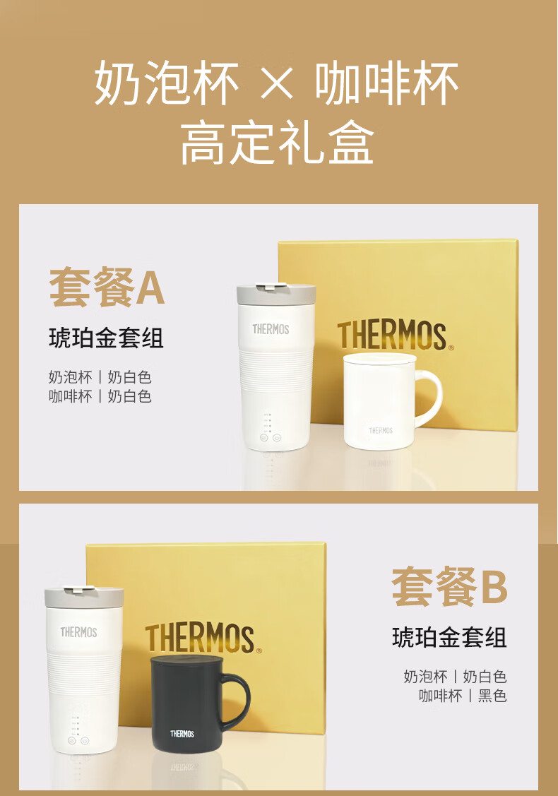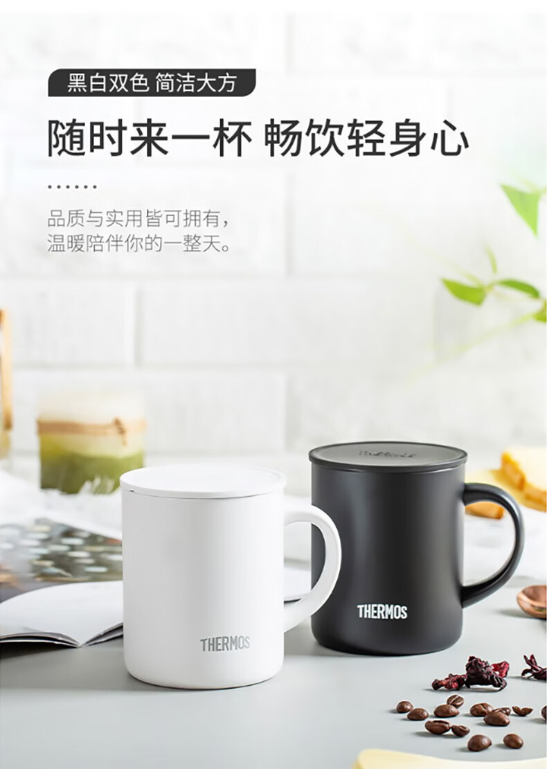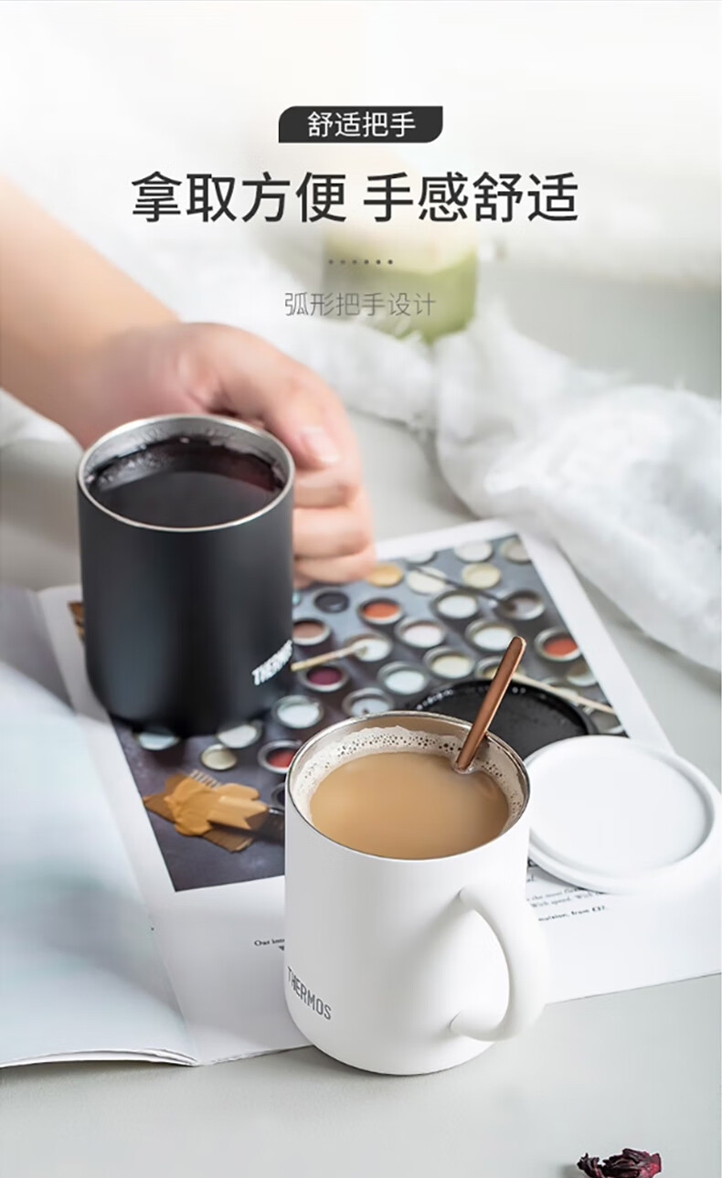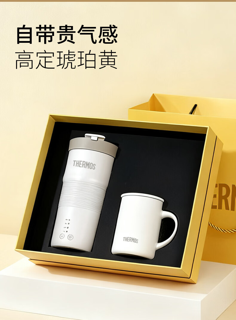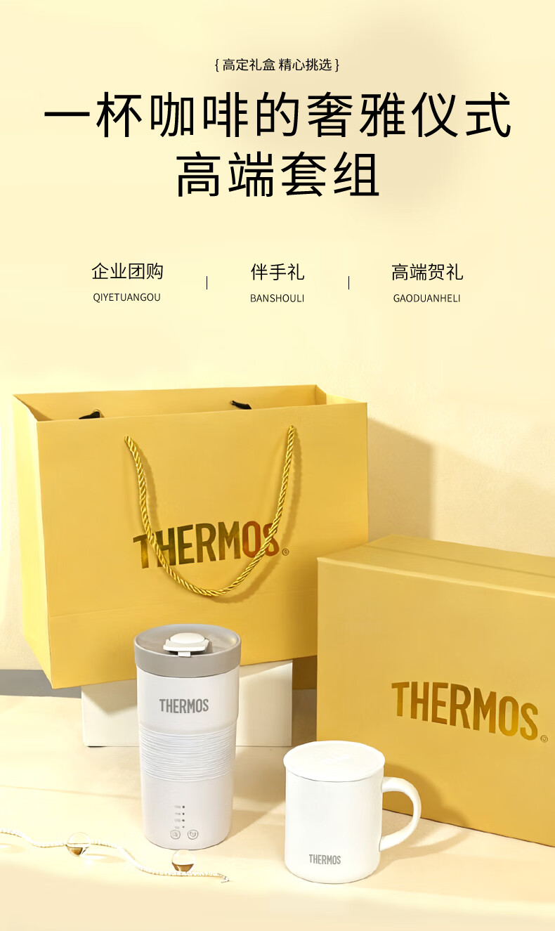 膳魔师(THERMOS)多功能奶泡机电动便携式热水杯家用咖啡搅拌牛奶打发冷热双用奶泡杯 户外车载水杯加热杯 团购送礼 【标准款】淡雅白