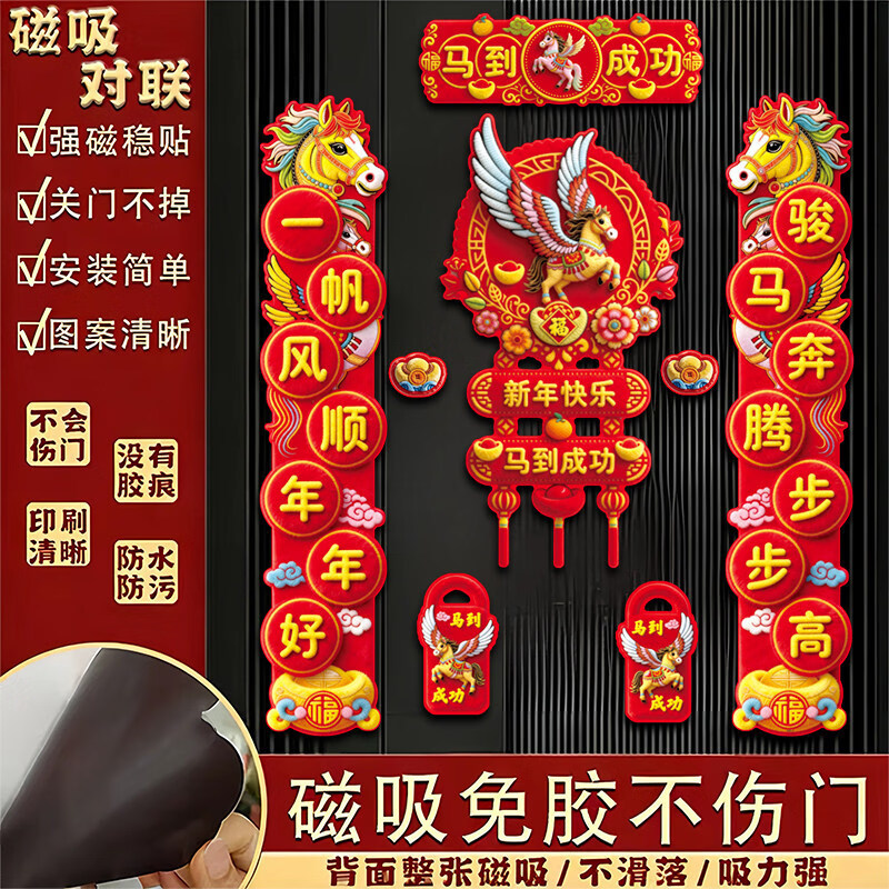 马年2026新款磁吸对联入户大门贴福字春节春联过年布置新年装饰 SW2-一帆骏马【1套装】 无规格