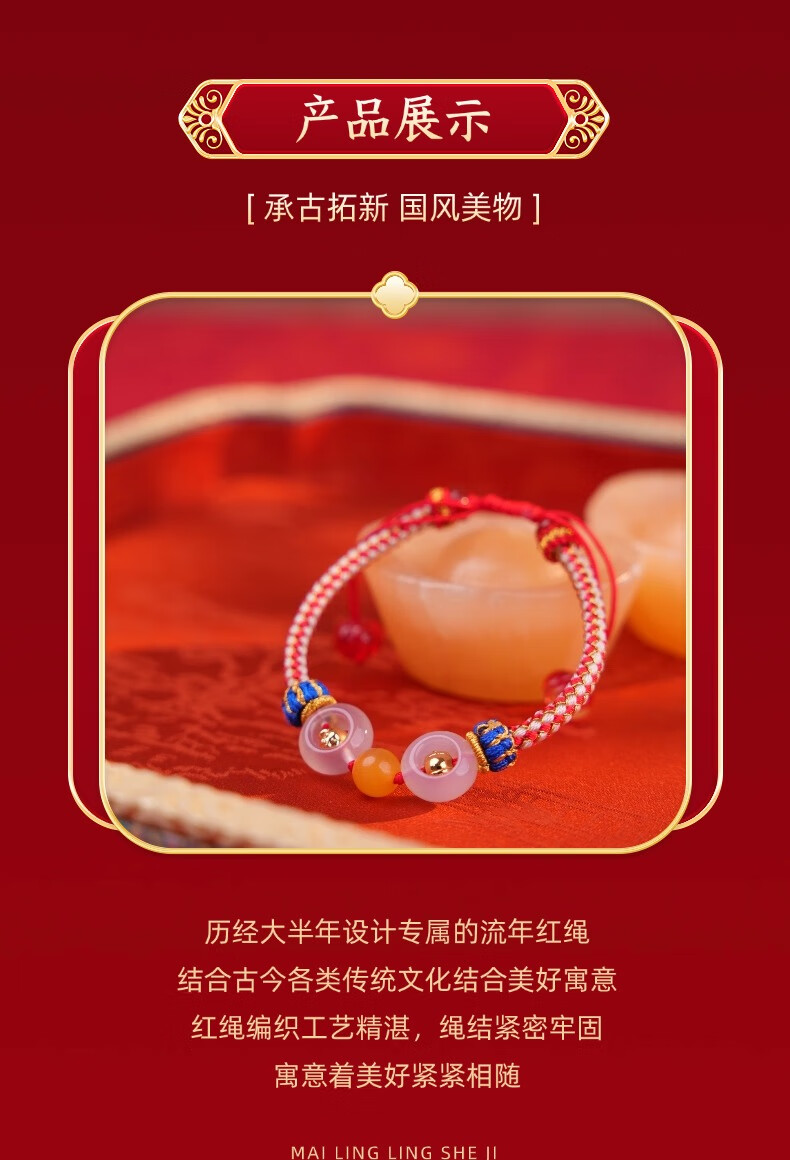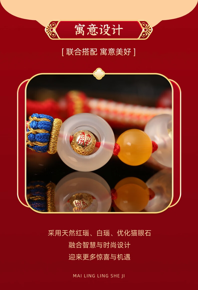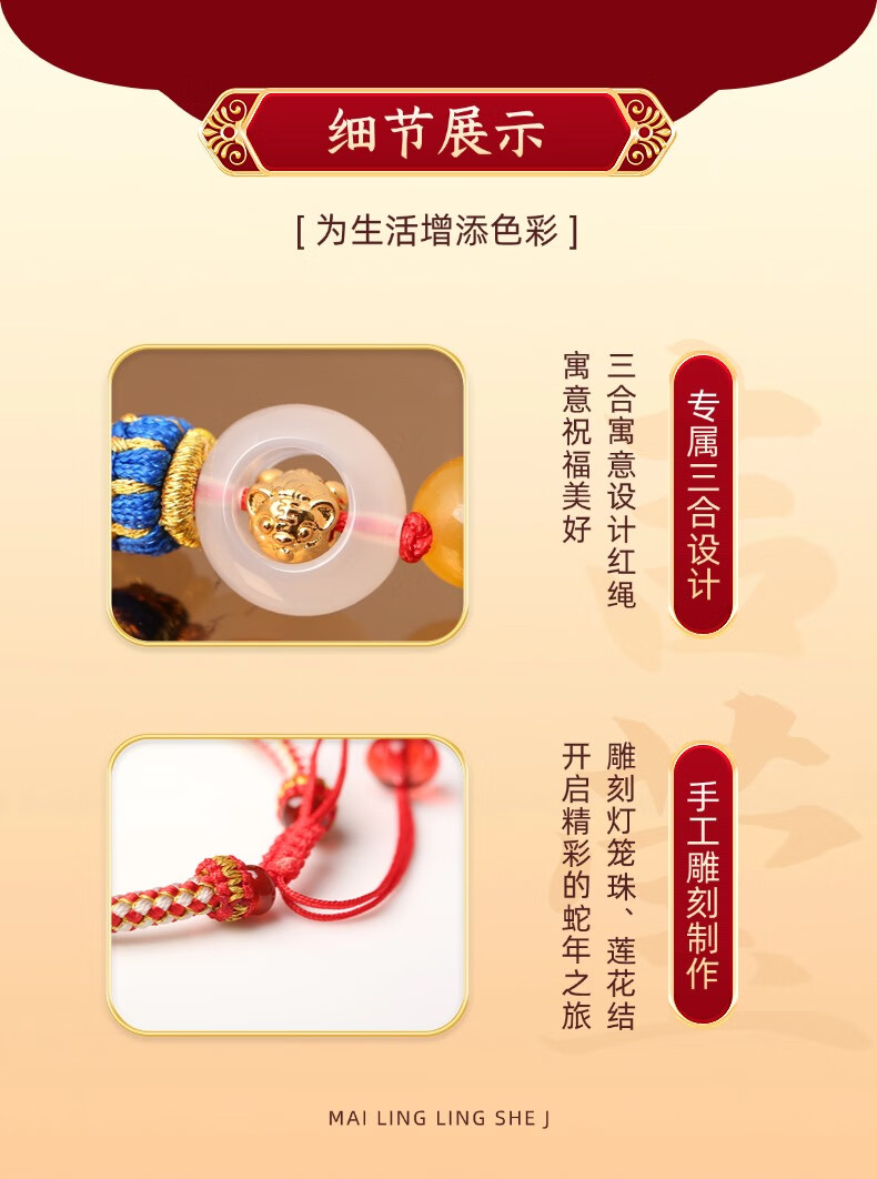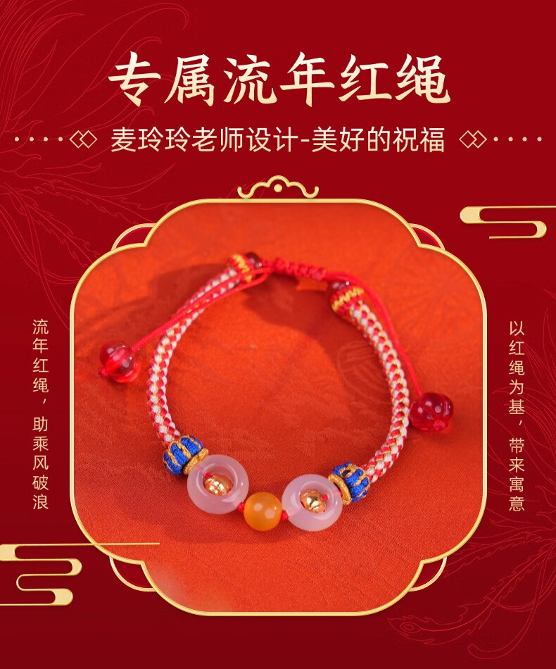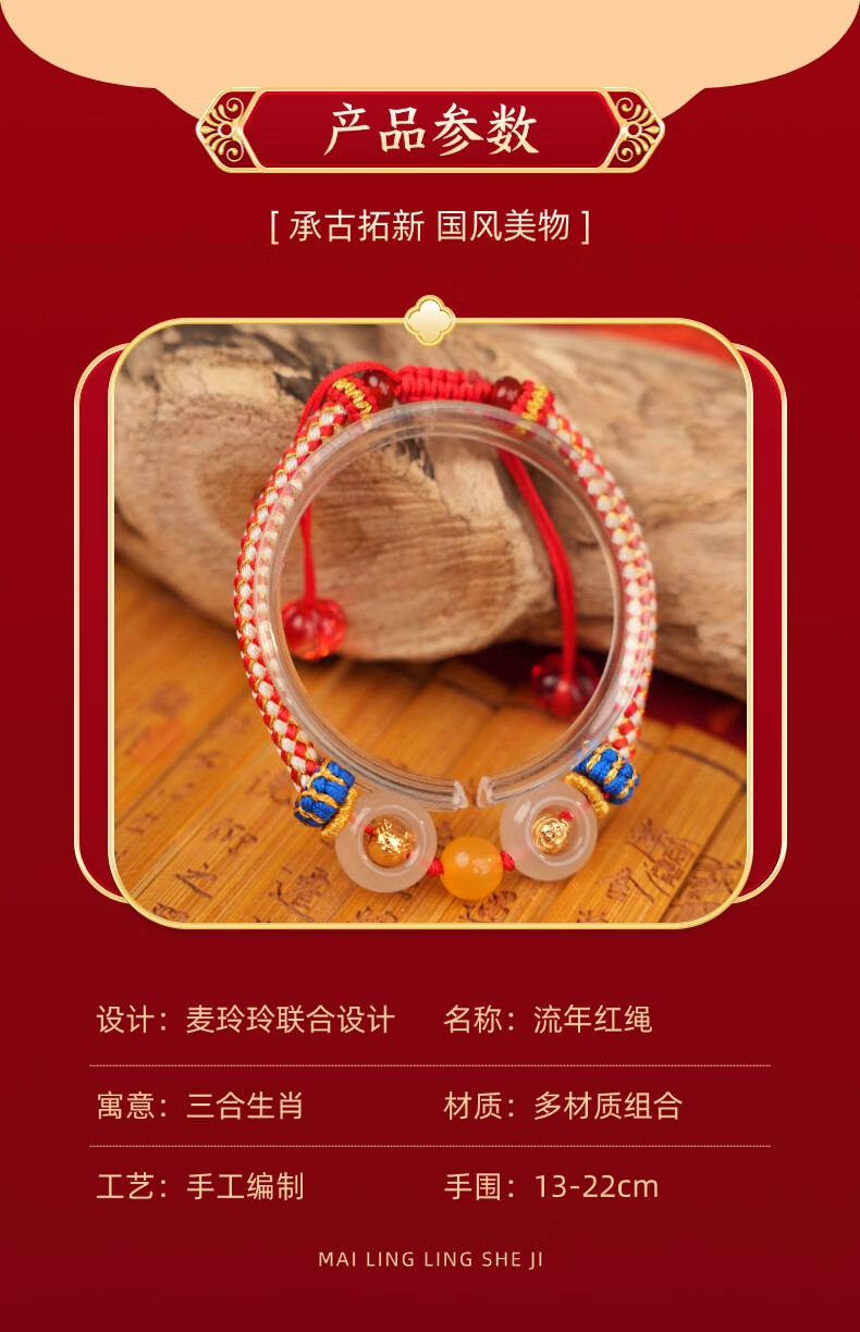 灵机生活馆麦玲玲联名2026年本命年年红绳流年三合生肖红绳手链新年礼物 【属猪猴虎鸡羊龙蛇佩戴】麦玲玲联名款2026年生肖红绳