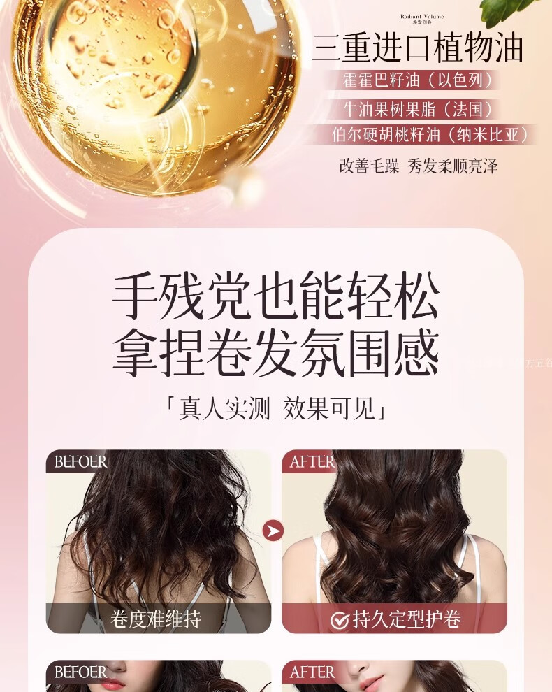 DEATKN德国弹力素女卷发保湿持久蓬松定型防毛躁烫头发后护发精华素 【1抹护卷定型】香氛护卷弹力素300g 【德国品牌】