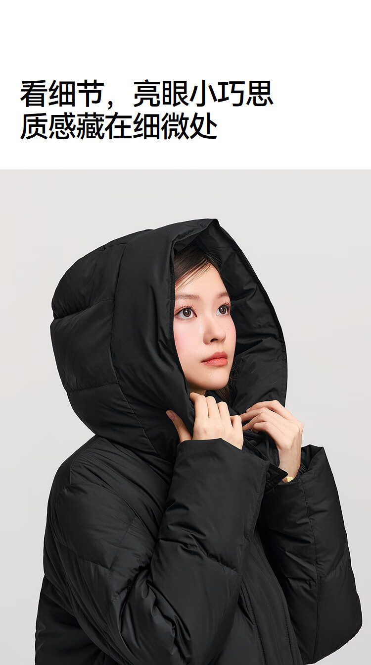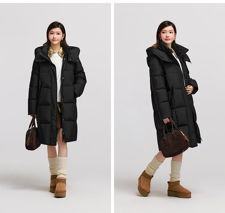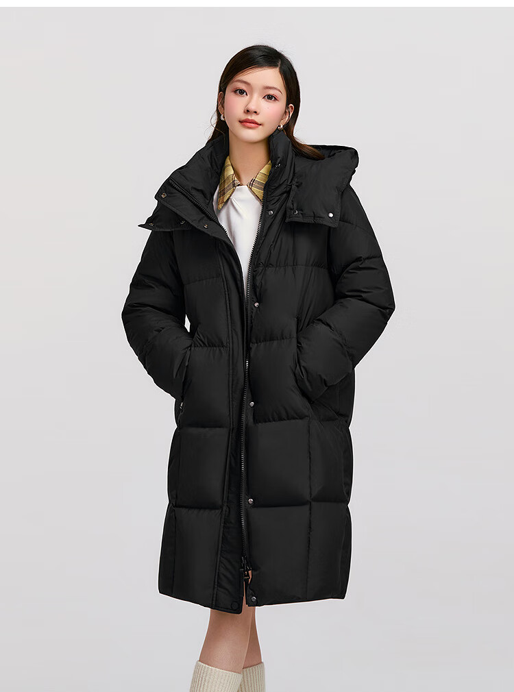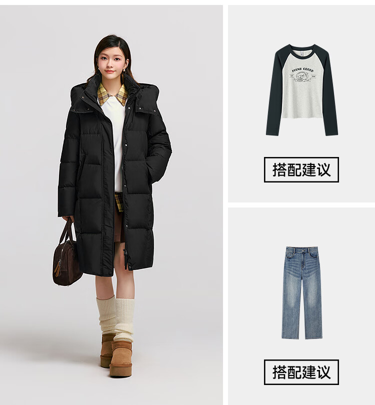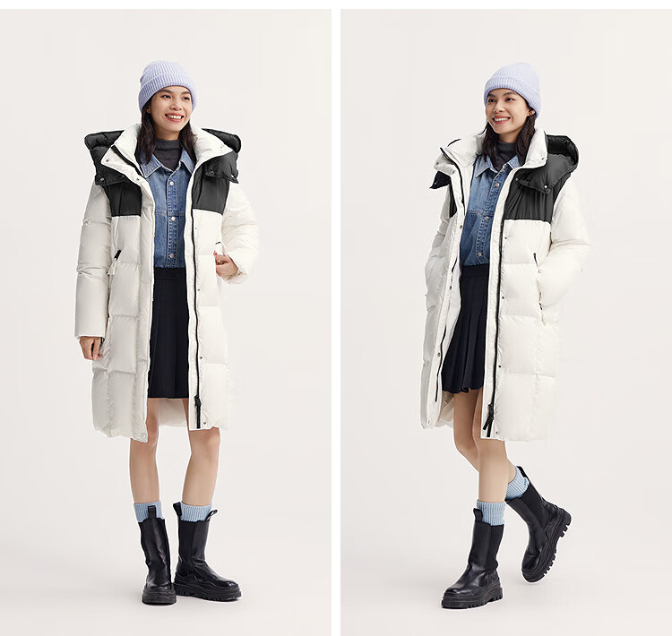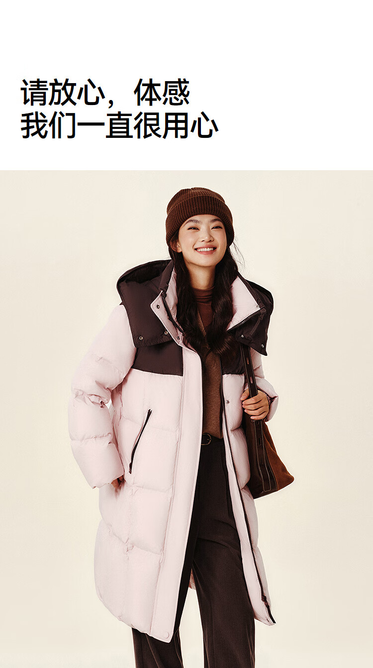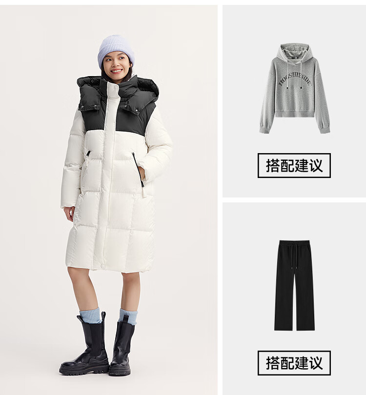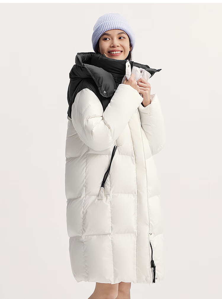 森马(Semir)陈都灵|羽绒服女冬长款高洁净90绒子撞色连帽面包服101724113003