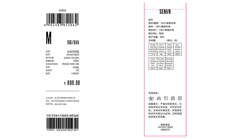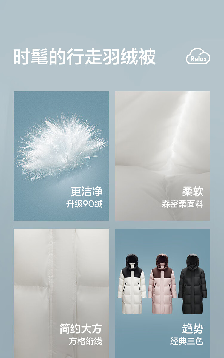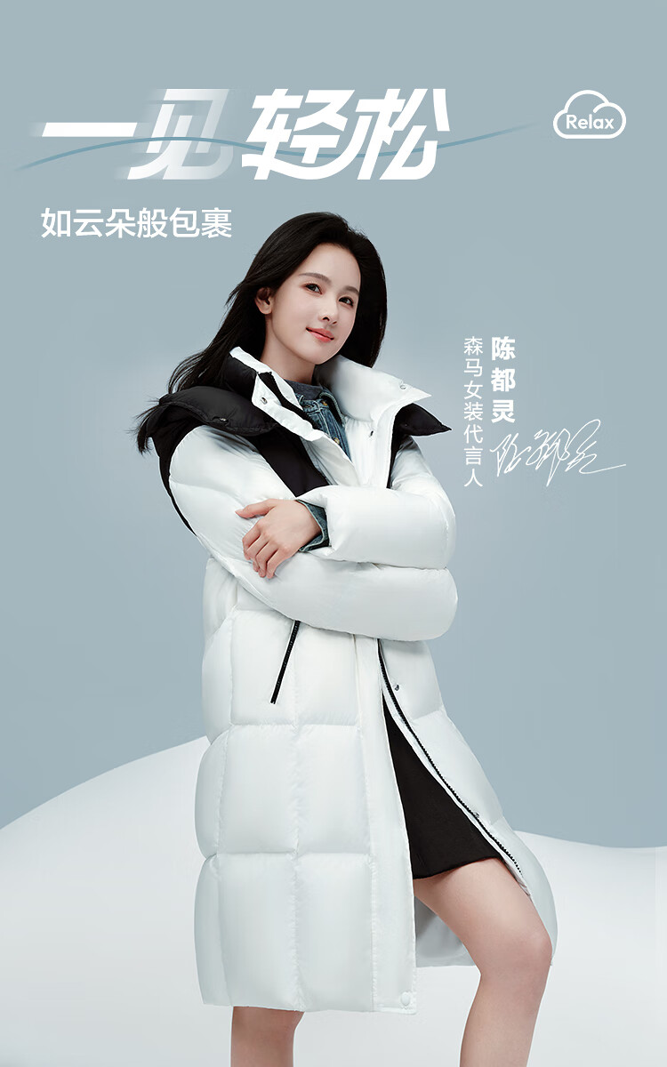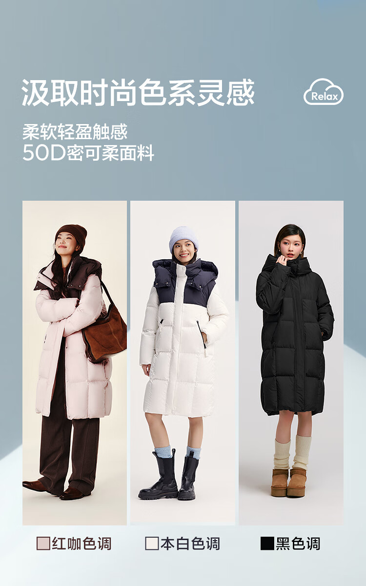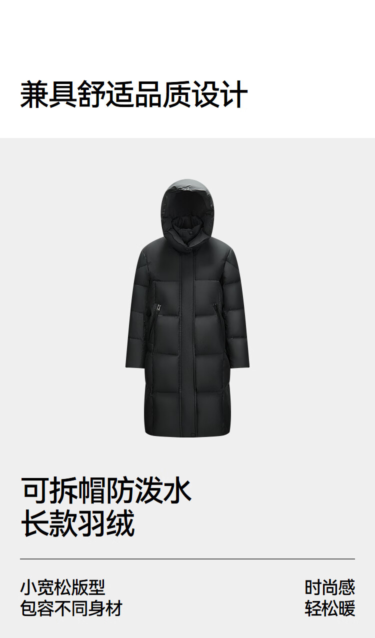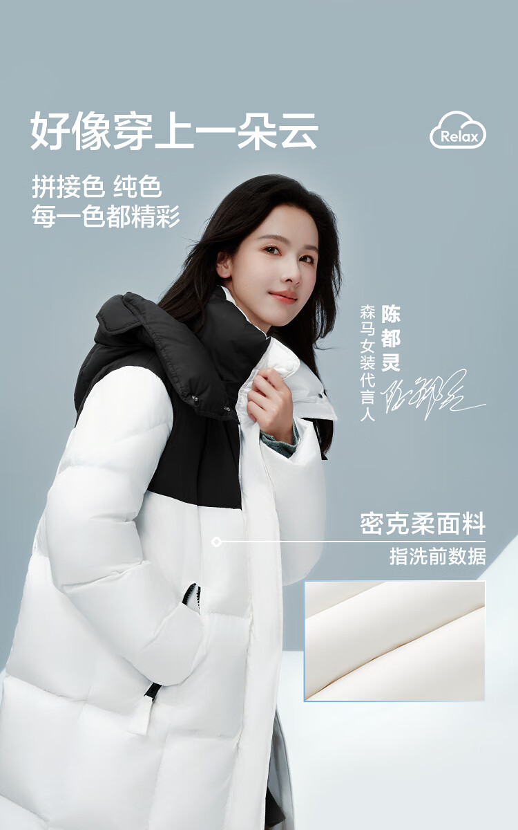 森马(Semir)陈都灵|羽绒服女冬长款高洁净90绒子撞色连帽面包服101724113003