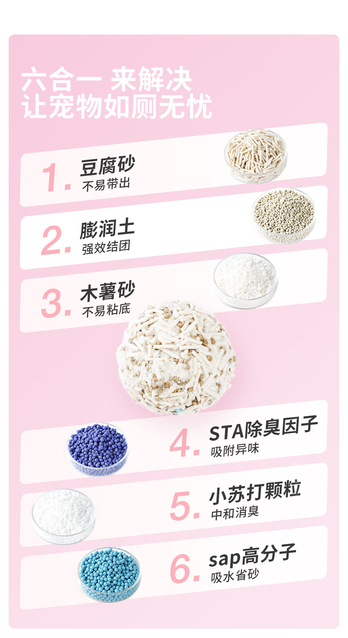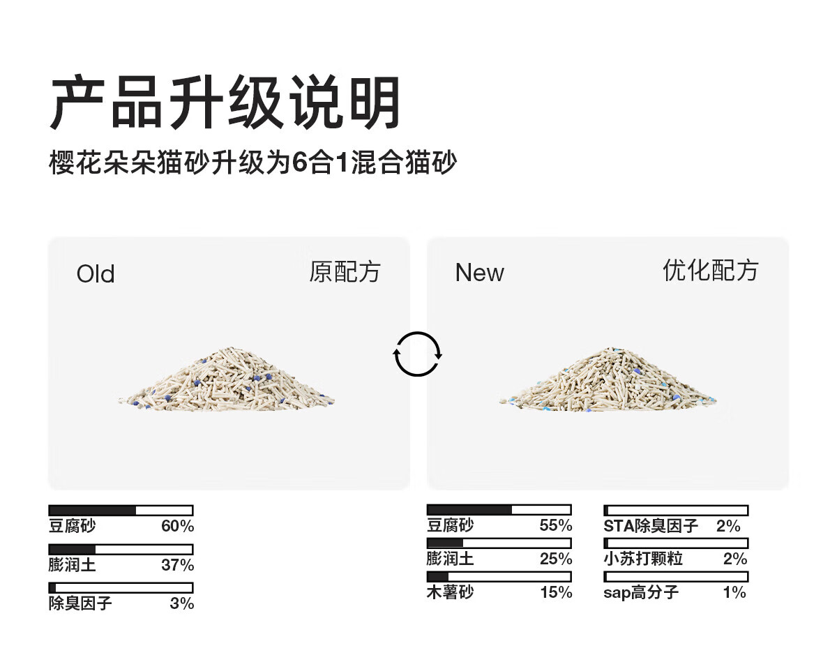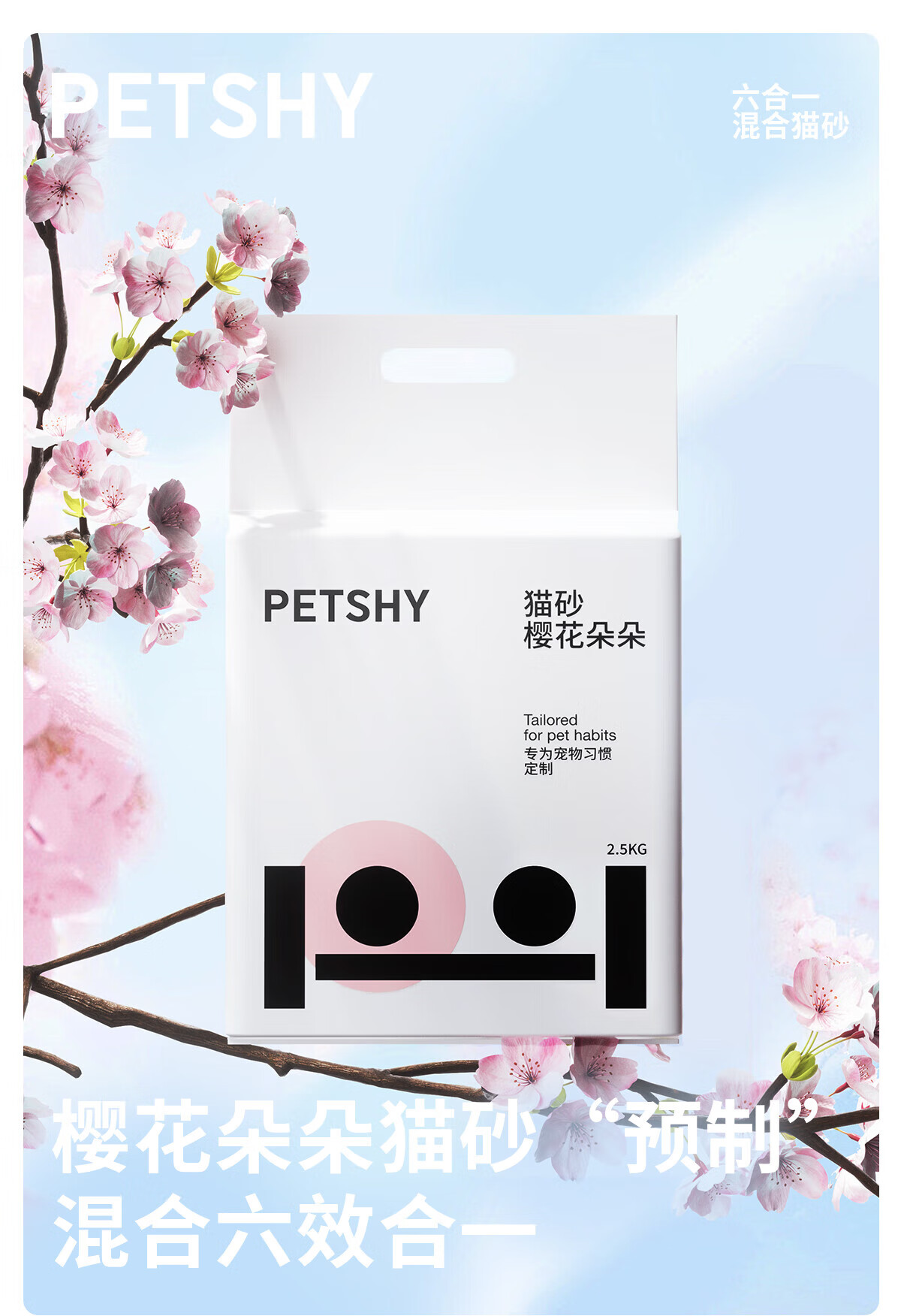 petshy百宠千爱 木薯豆腐混合猫砂六合一植物除臭低尘2.5kg自营樱花猫砂