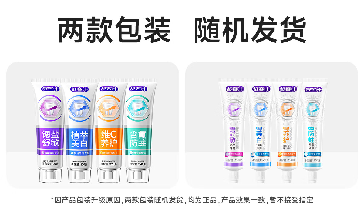 舒客牙膏氨基酸美白亮白去渍牙齿牙黄烟渍牙垢含氟护龈成人清新口气 舒客舒敏牙膏120g+舒敏120g