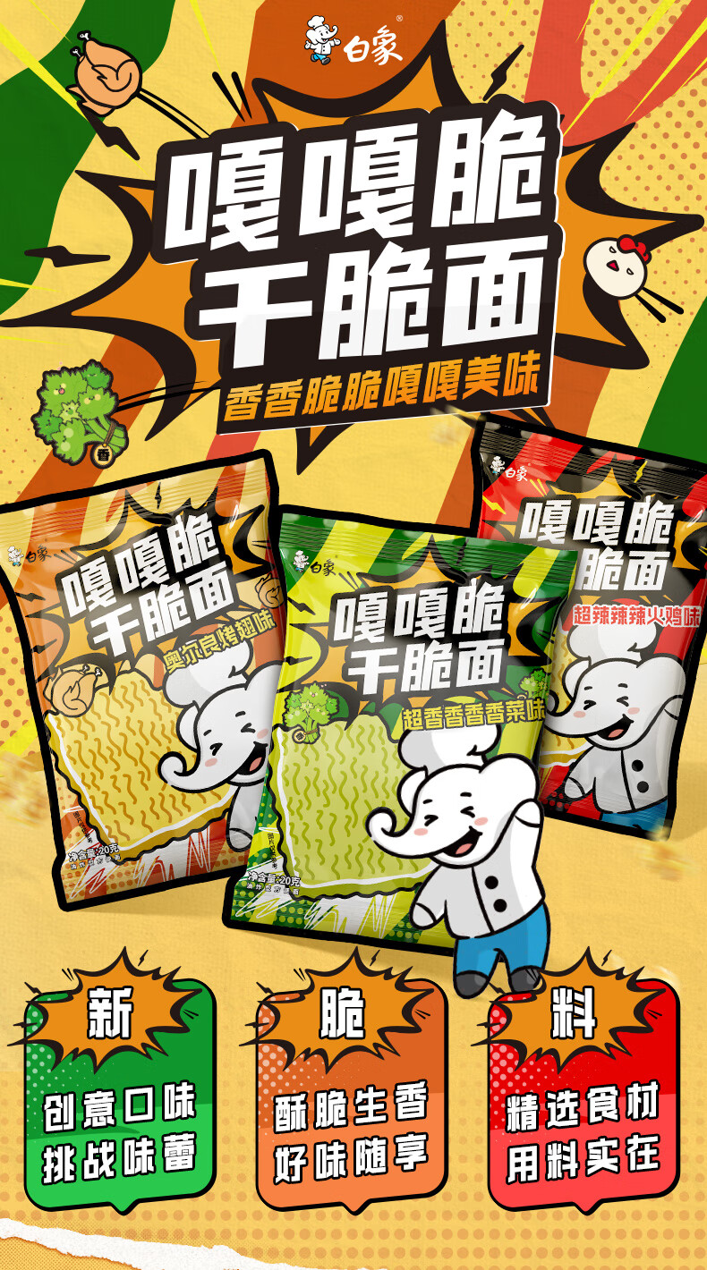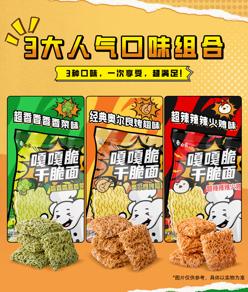白象嘎嘎脆嘎嘣干脆面网红零食解馋韩式火鸡干脆面办公室整箱批发囤货 【3口味混合40袋】