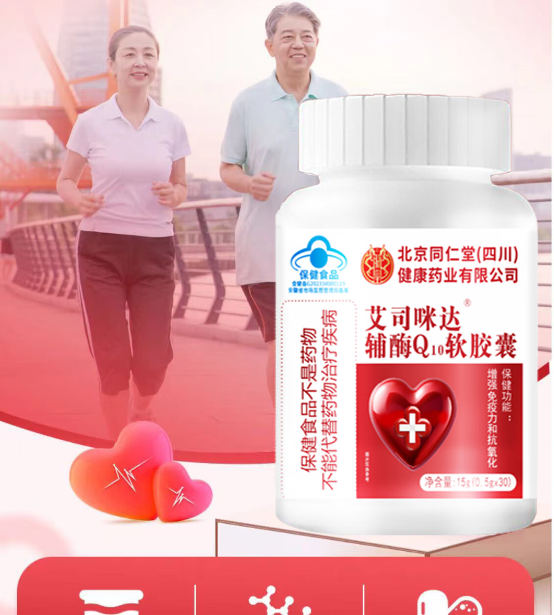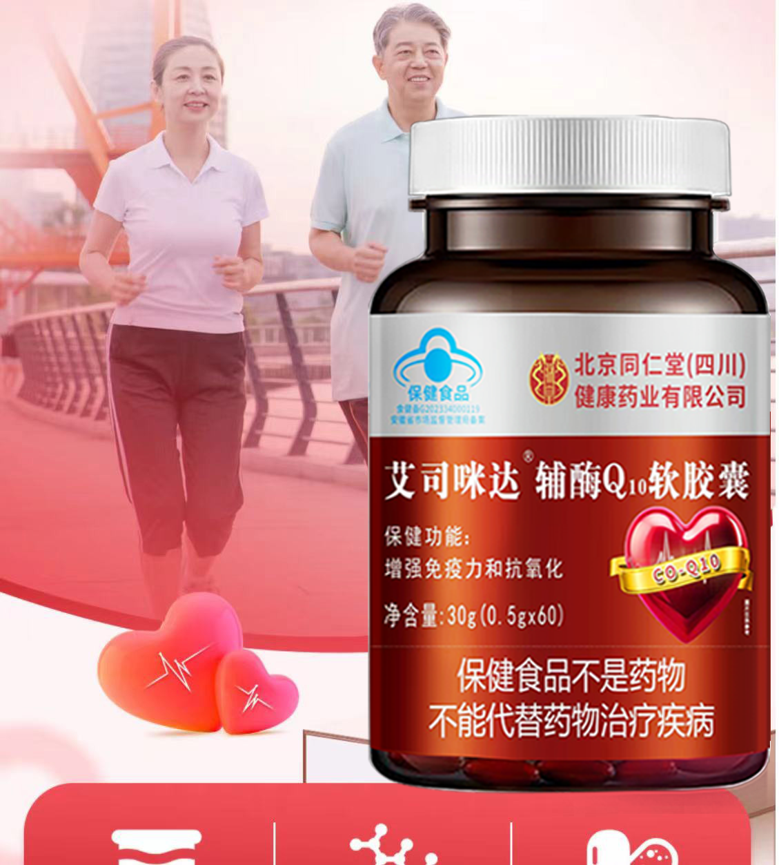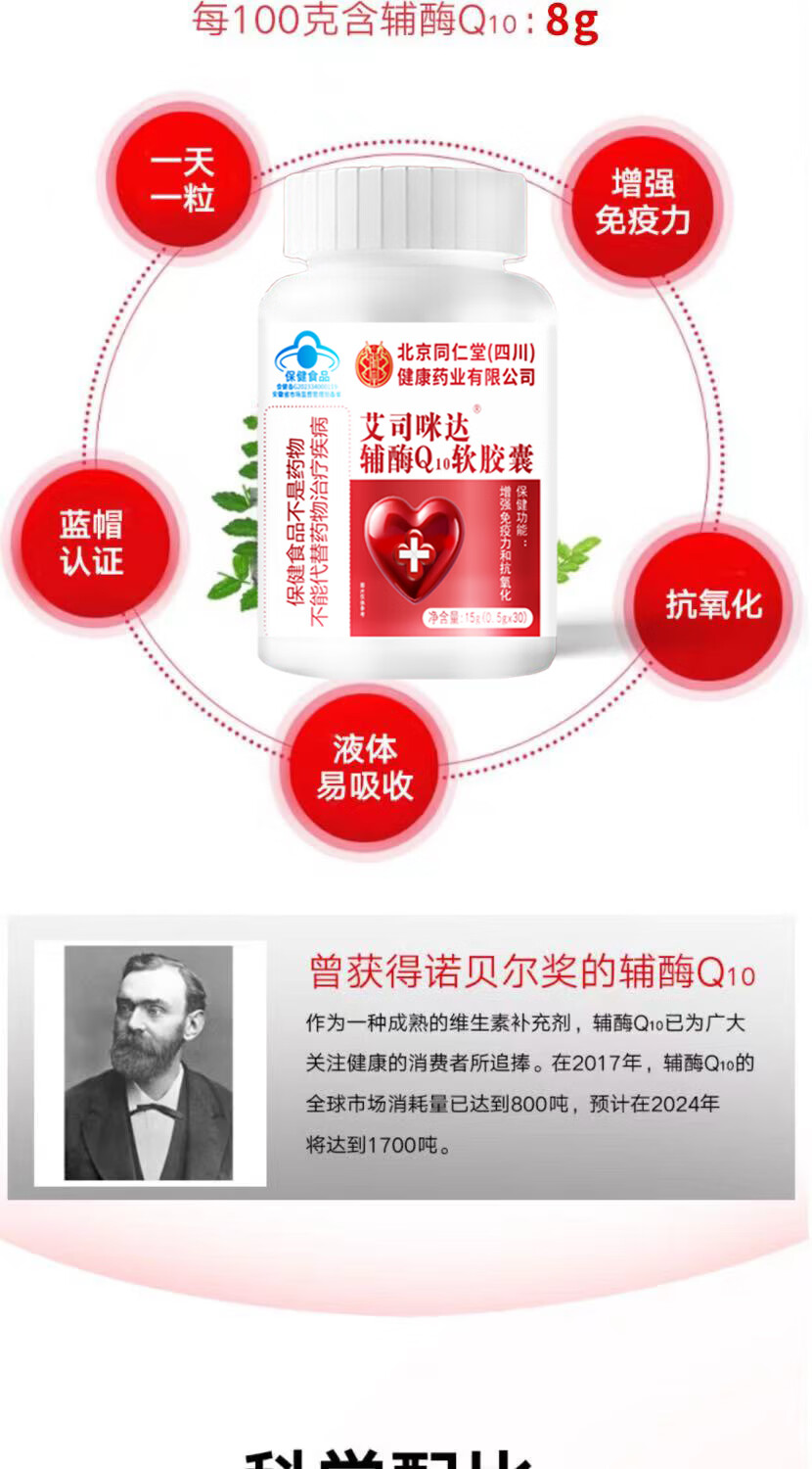 朕皇北京同仁堂辅酶Q10软胶囊增强免疫力和抗氧化保健食品蓝帽认证 60粒*3瓶