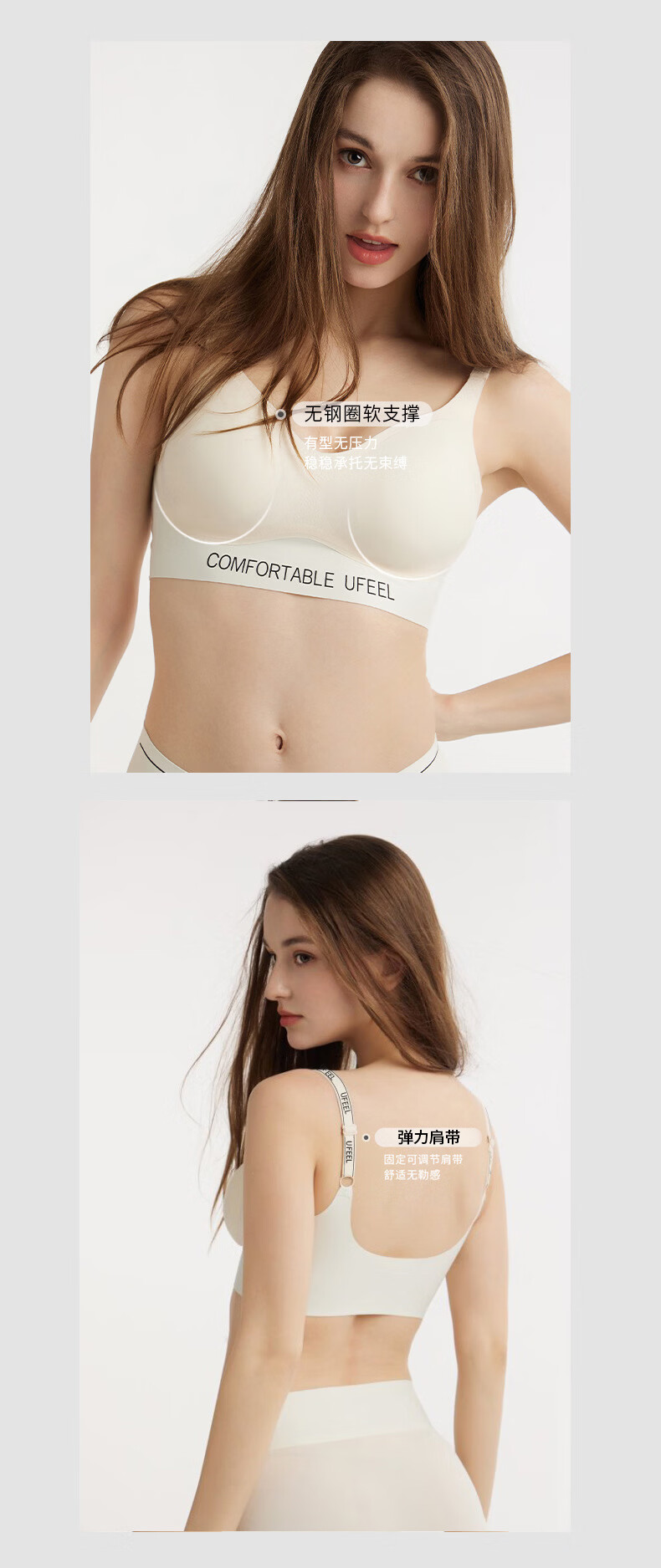 UFEEL【单件清仓】内衣女士无痕透气运动内衣显瘦无钢圈文胸8668 黑白色颜色随机 单件 M 80-100斤