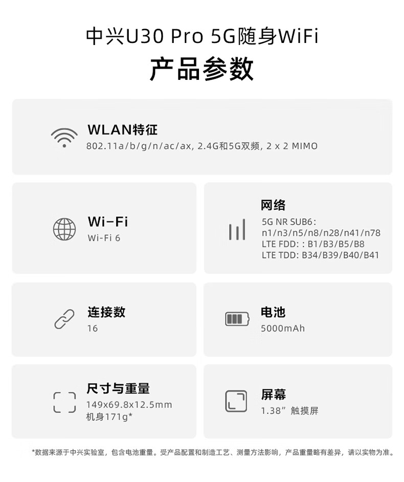 中兴(ZTE)U30 Pro 5G可插卡移动随身wifi无线网卡便携式热点5g路由器无限笔记本电脑通用流量车载卡托2025款