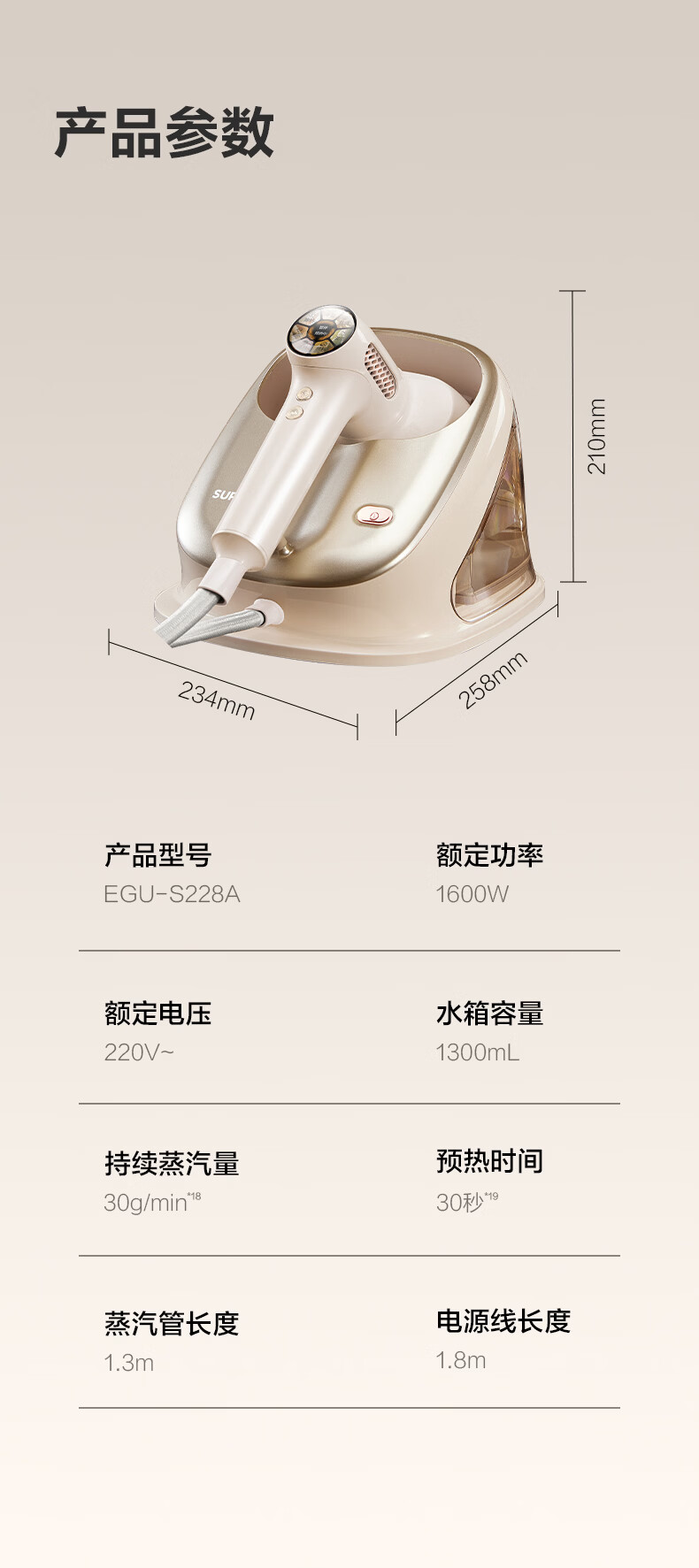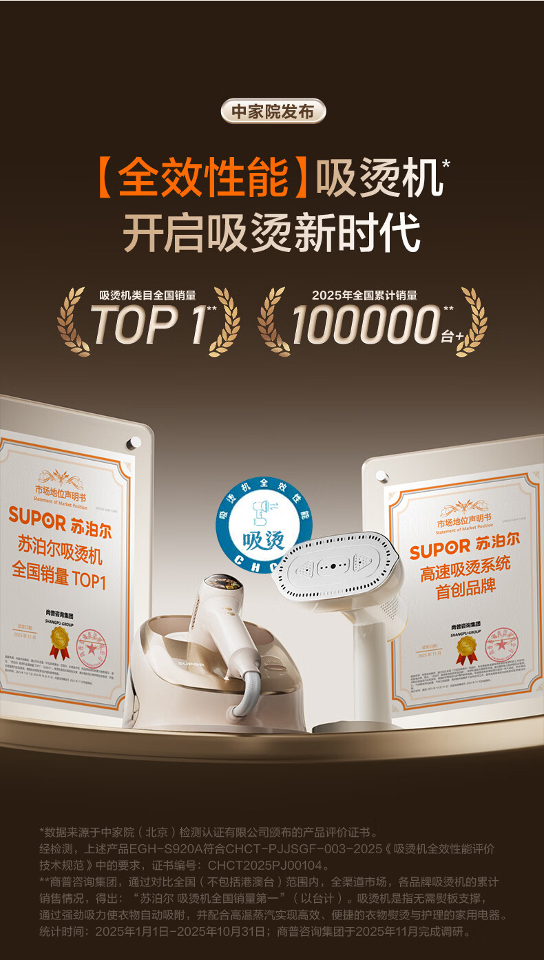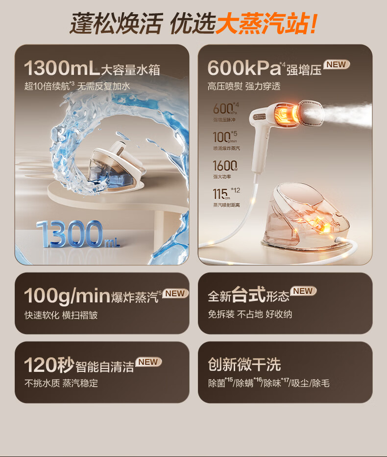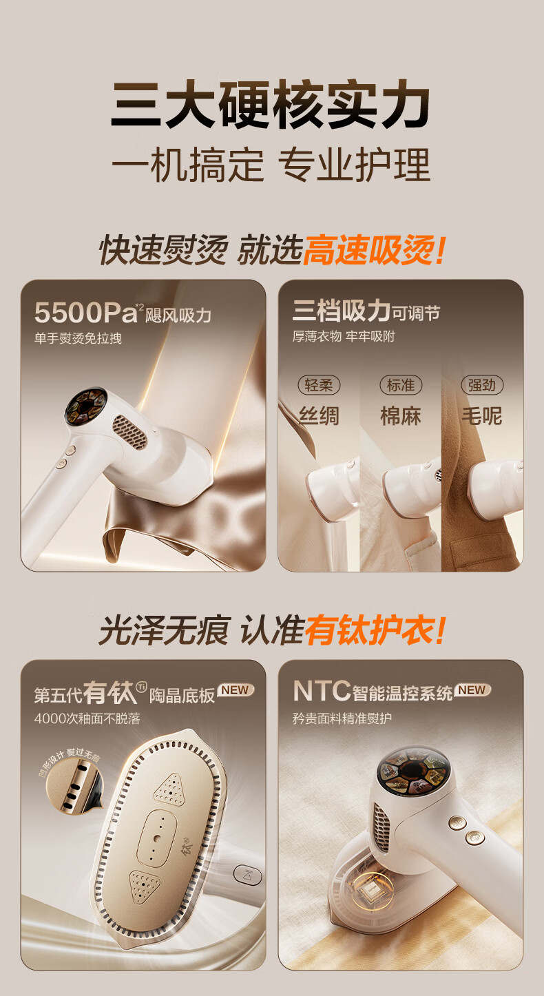 苏泊尔(SUPOR)【有钛蒸汽吸烫机】基站式吸熨烫机100g/min吸附台式挂烫机家用1.3L手持电熨斗吸气式烫衣机S228A
