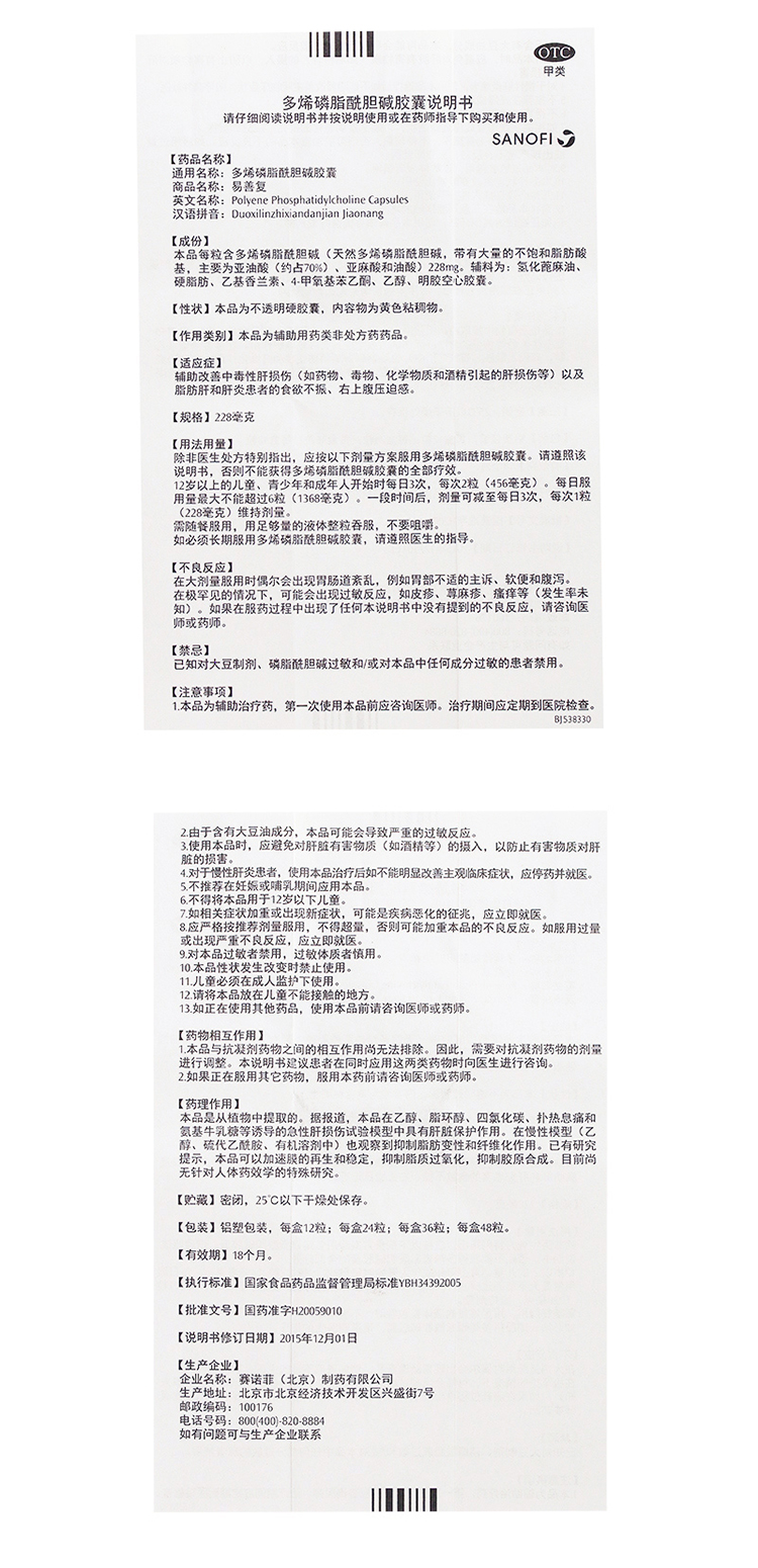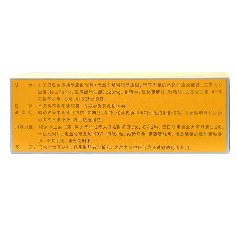 易善复 多烯磷脂酰胆碱胶囊 228mg*36粒 辅助改善中毒性肝损伤 脂肪肝,食欲不振,肝炎,酒精肝,右上腹压迫感
