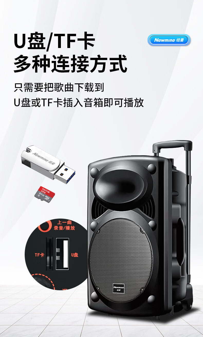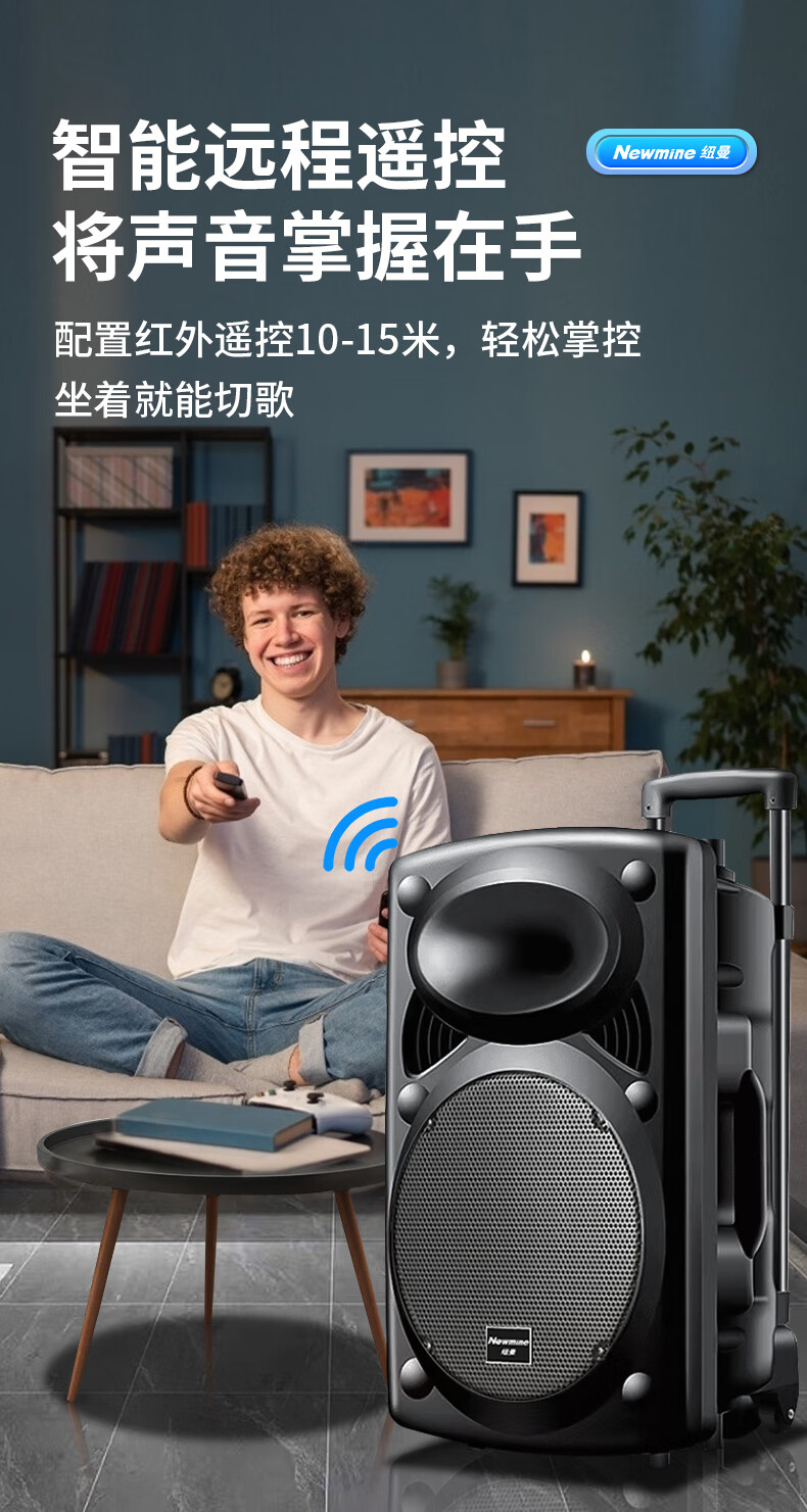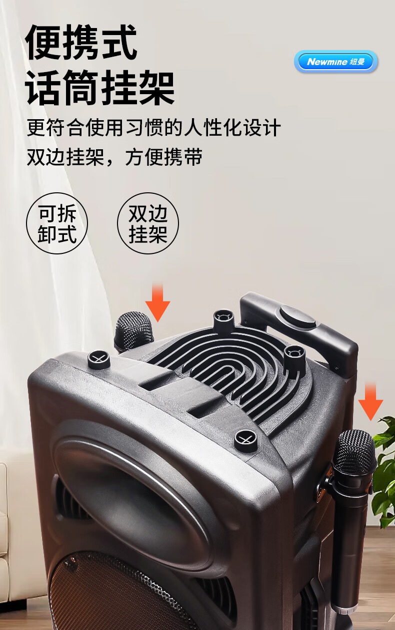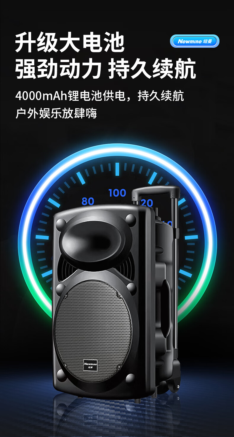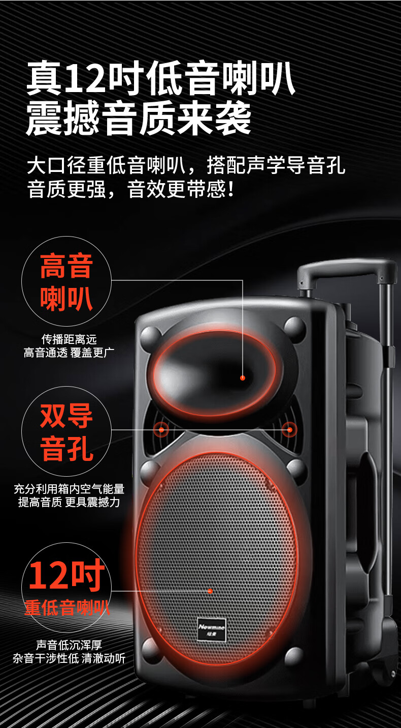 纽曼(Newmine)B12广场舞音响12英寸户外大音量蓝牙拉杆音箱大功率便携式移动演出k歌低音炮地摊摆摊喇叭双麦版
