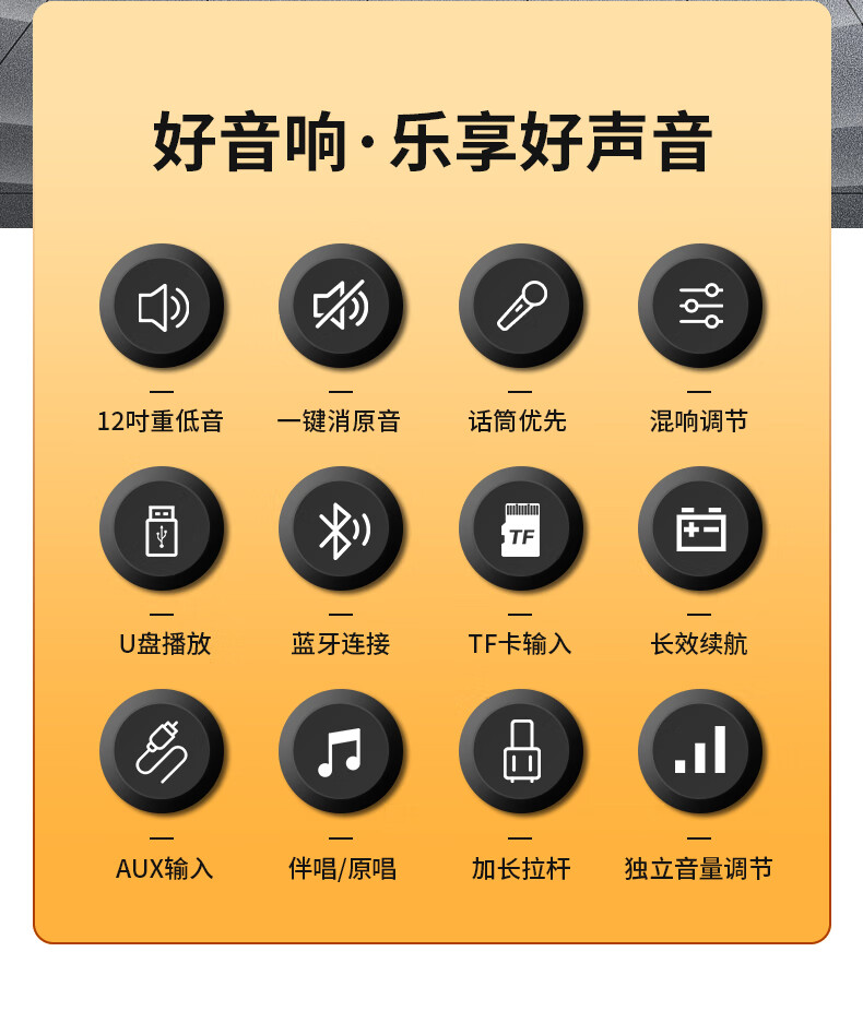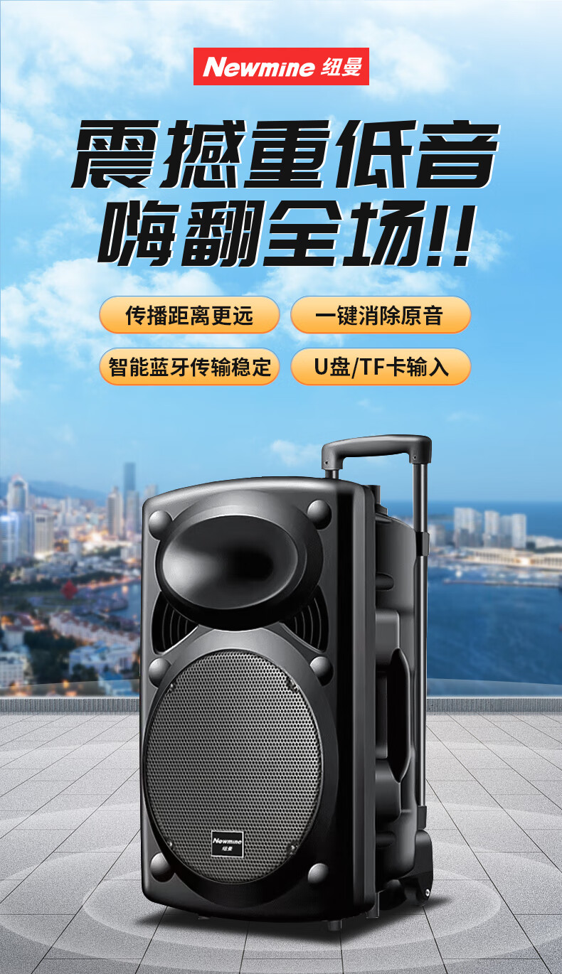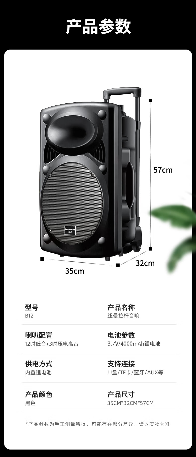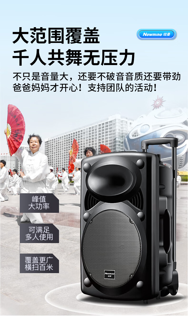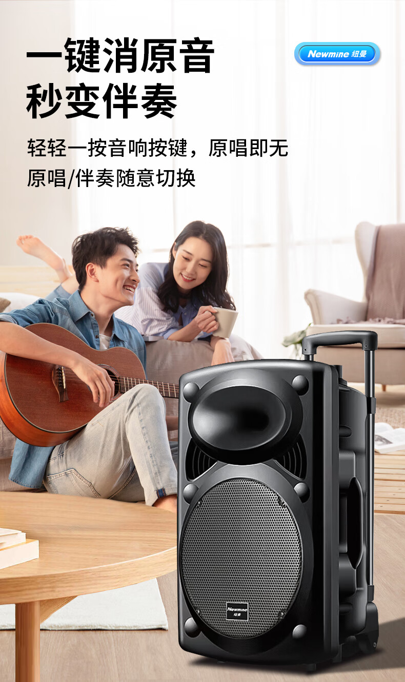 纽曼(Newmine)B12广场舞音响12英寸户外大音量蓝牙拉杆音箱大功率便携式移动演出k歌低音炮地摊摆摊喇叭双麦版