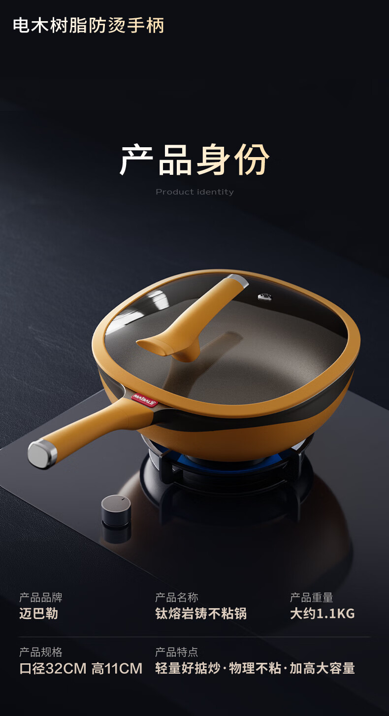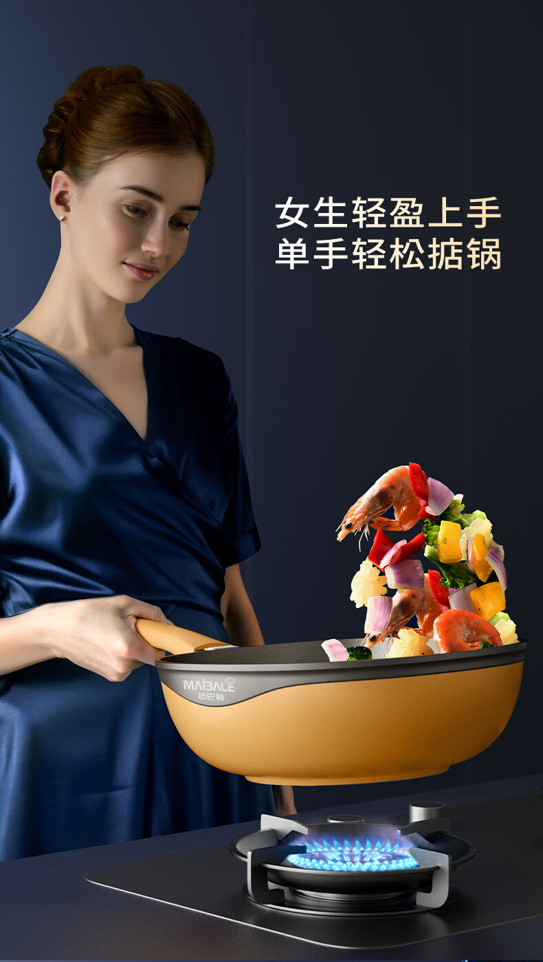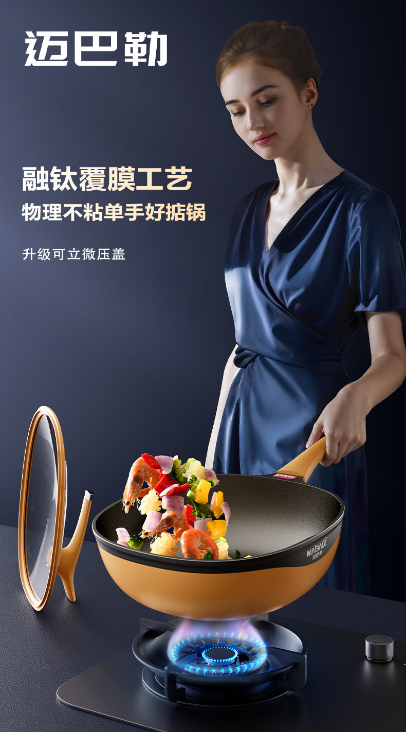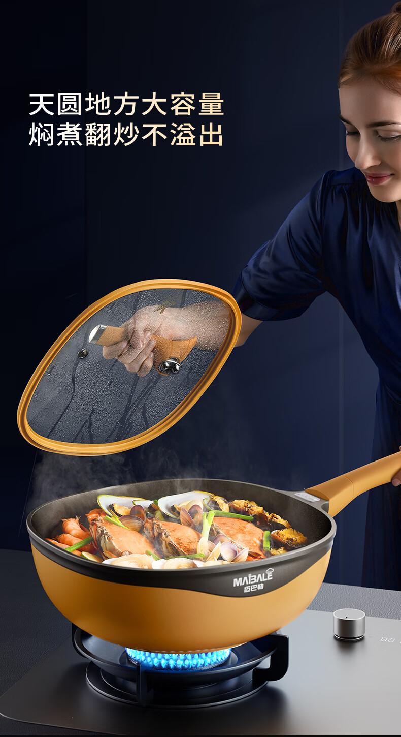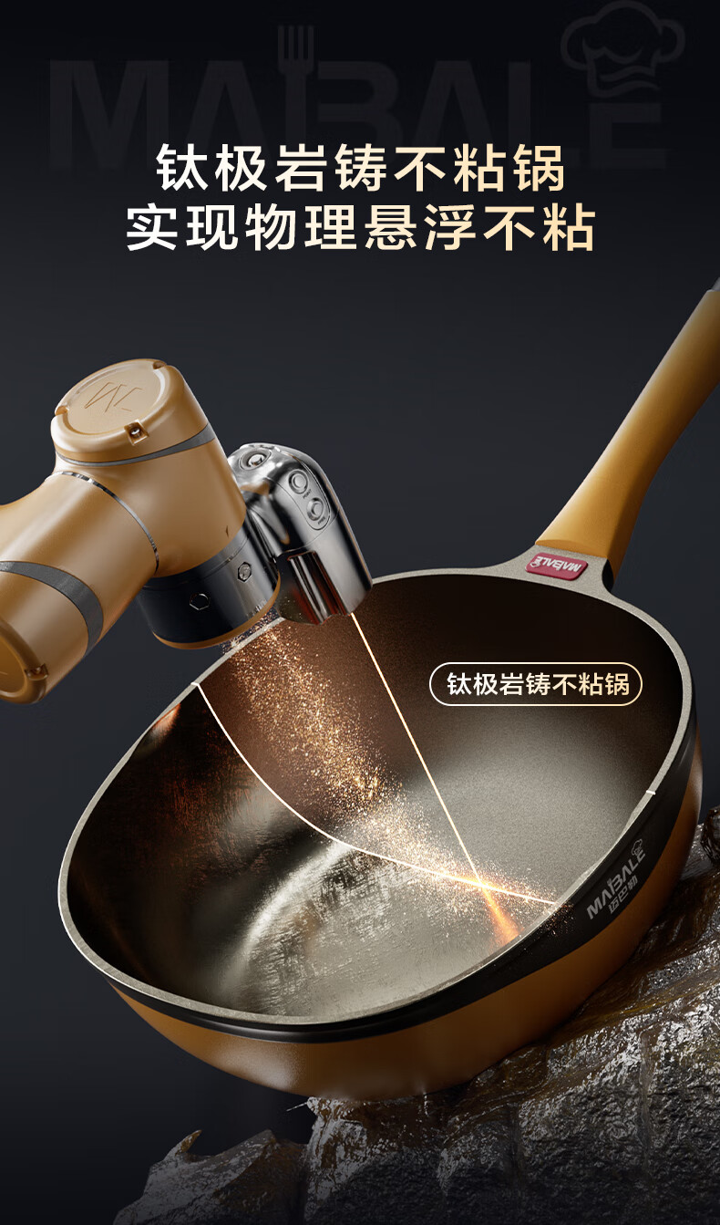 迈巴勒【抖音同款】钛极岩铸不粘炒锅煎炒多用途炒菜锅家用炒锅耐磨32cm