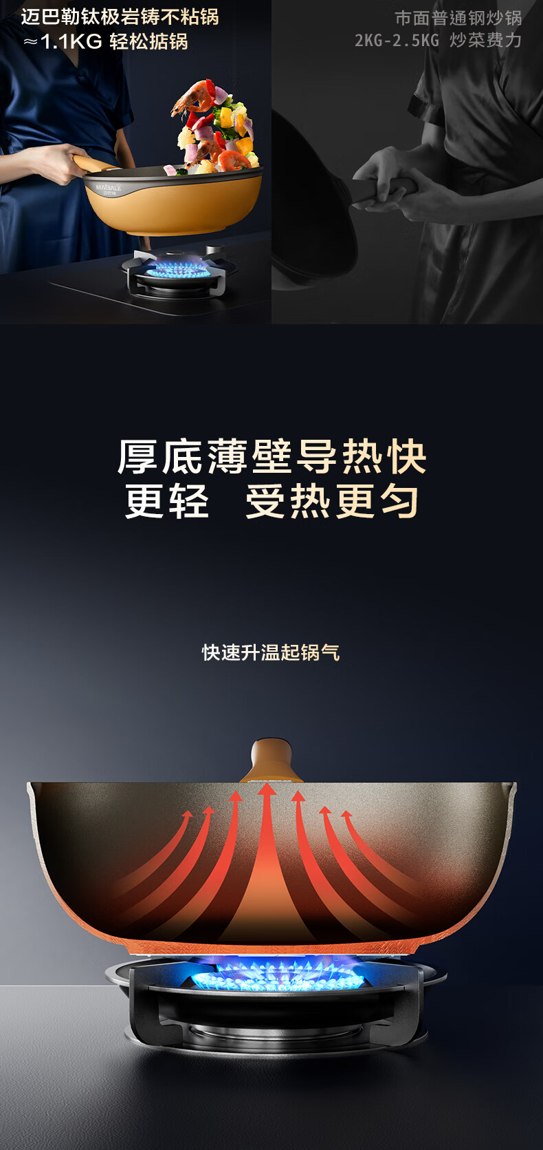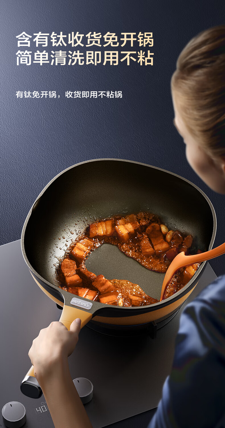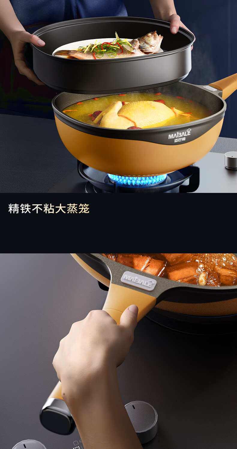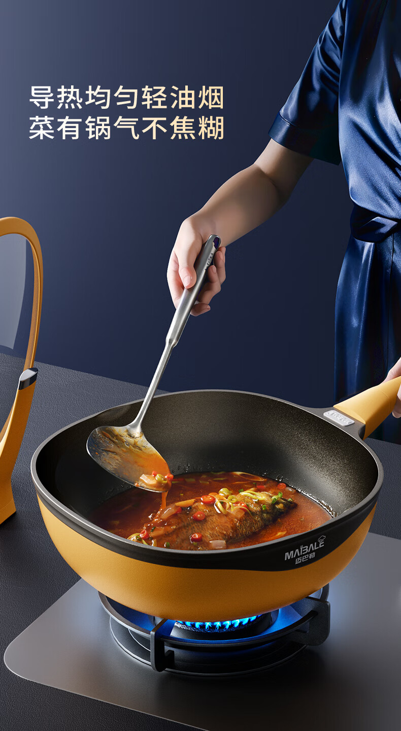 迈巴勒【抖音同款】钛极岩铸不粘炒锅煎炒多用途炒菜锅家用炒锅耐磨32cm