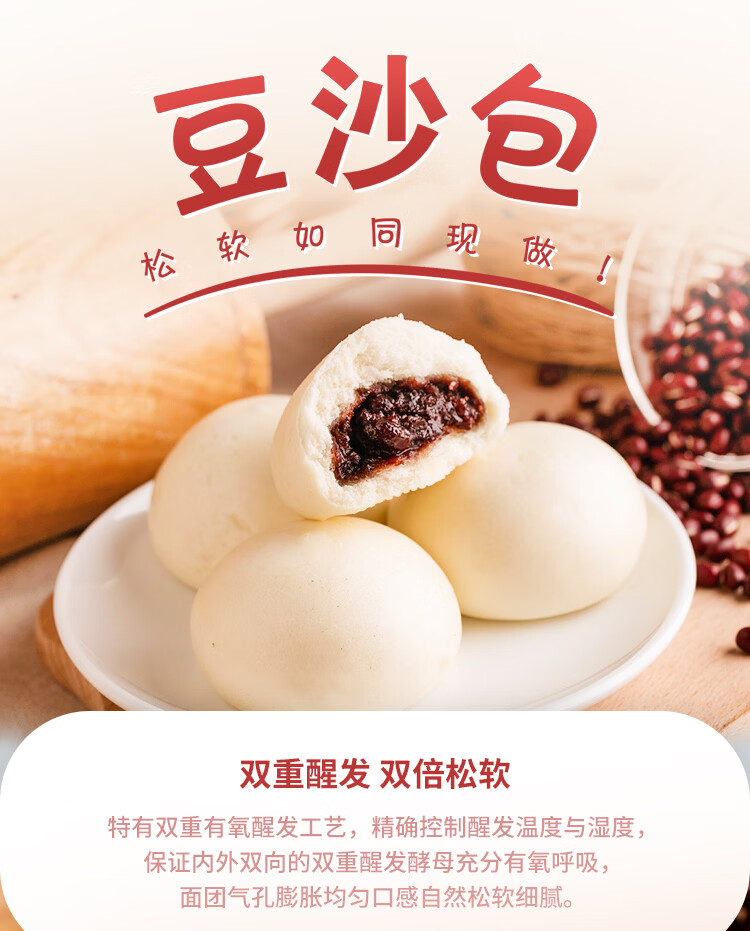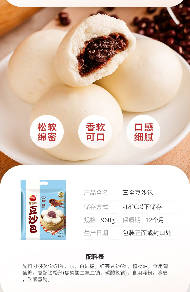 三全豆沙包960g约32只 早餐半成品儿童早点即食包点家庭装年货送礼