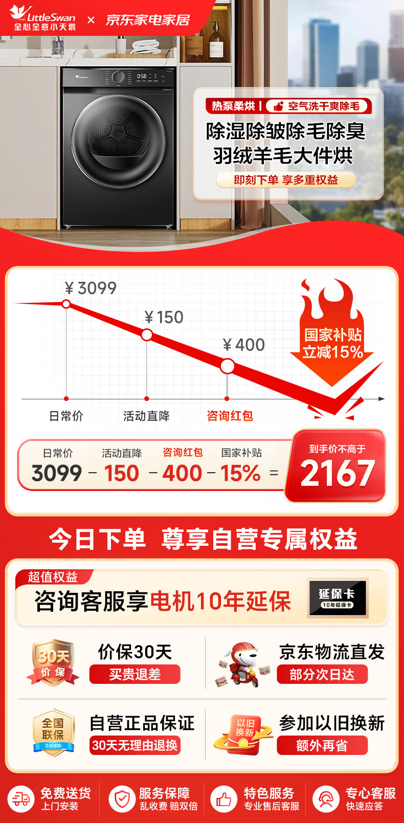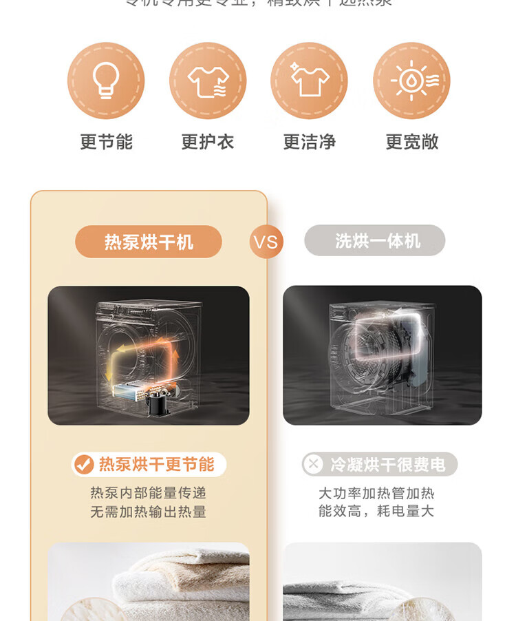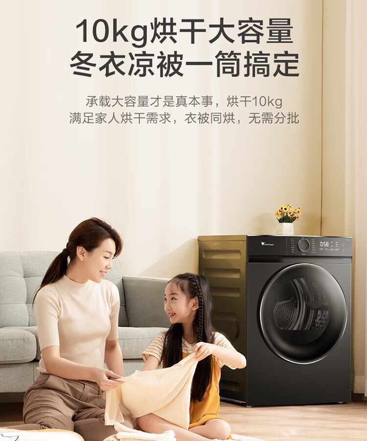 小天鹅(LittleSwan)10KG热泵烘干机家用大容量干衣机 AI正反转超薄节能省电祛味除潮家电以旧换新TH100-HL02T