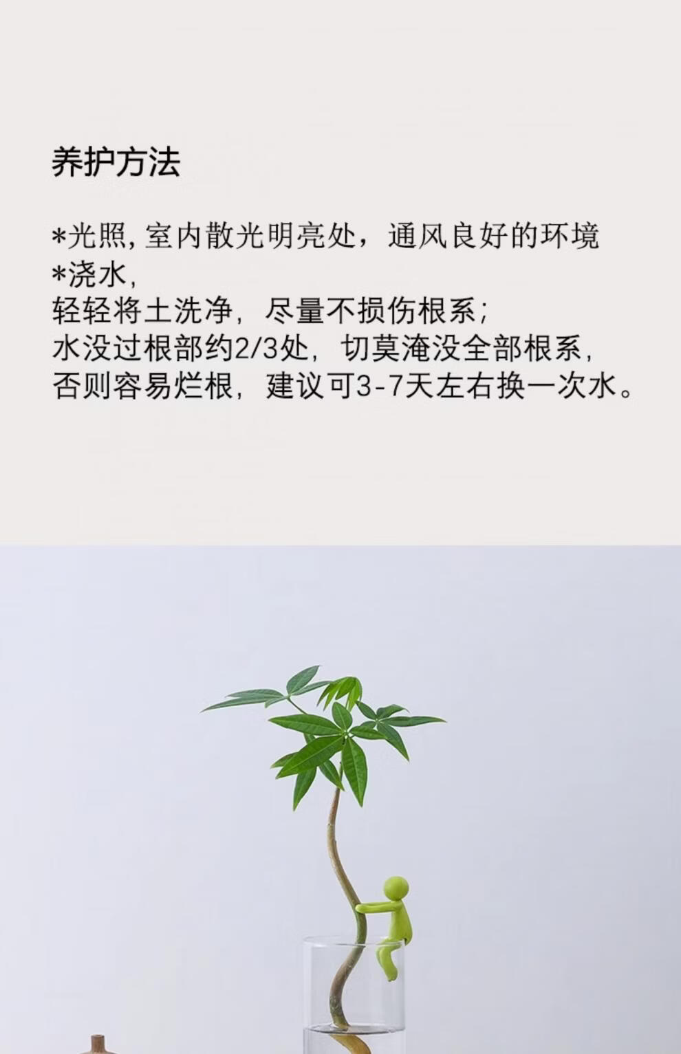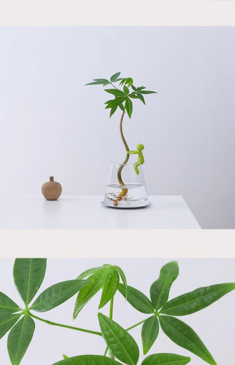 胖东来同款发财树水培盆栽客厅书房桌面办公室内四季懒人好养绿植 单杆发财树-圆筒杯-扶手小人 含盆