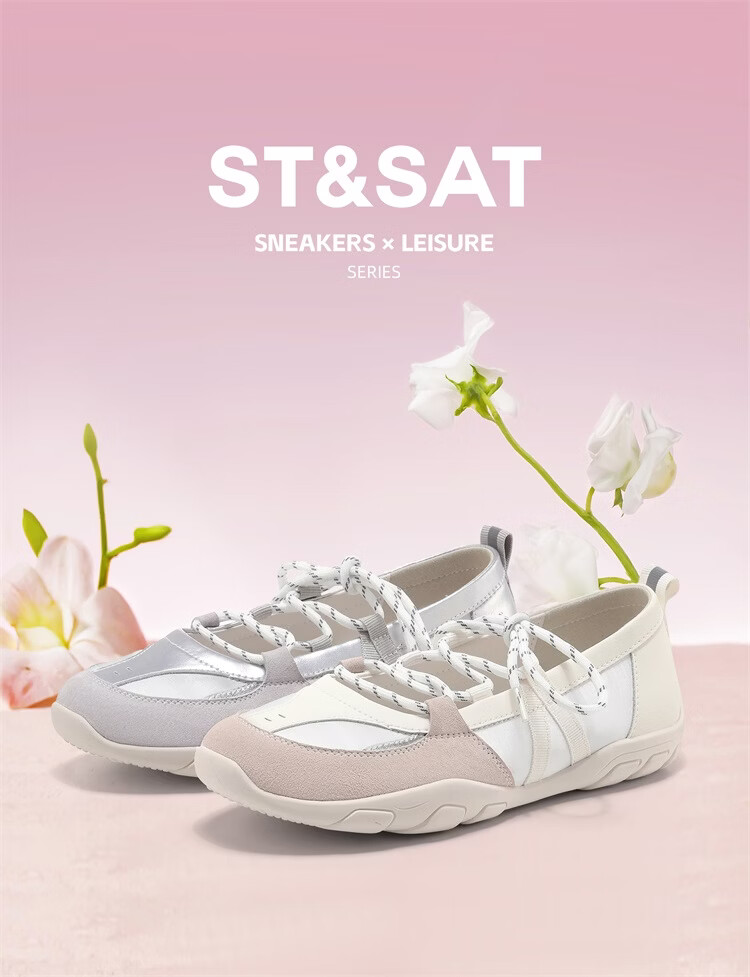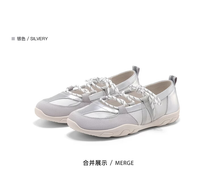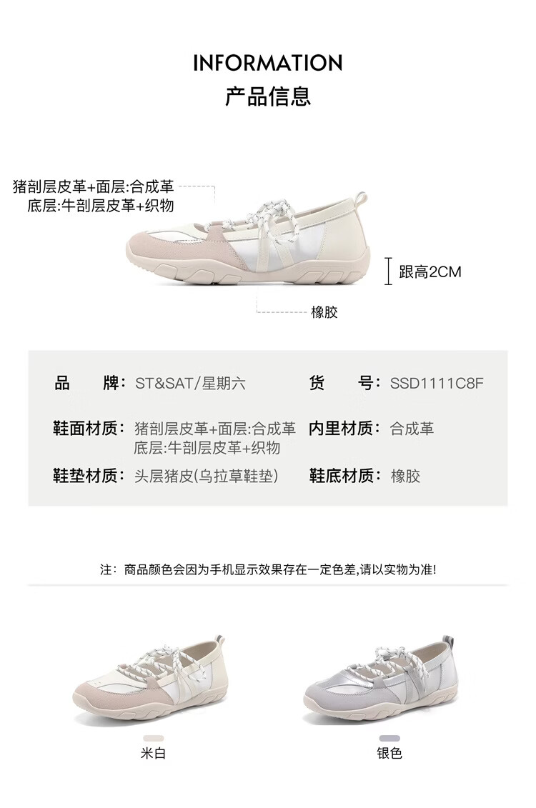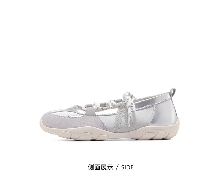 星期六(St&Sat)2026春季新款浅口复古单鞋网面百搭透气绑带软底豆豆芭蕾舞鞋子女 银色 37