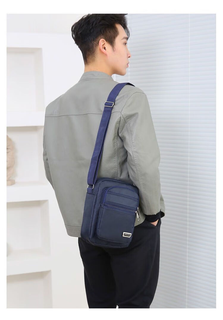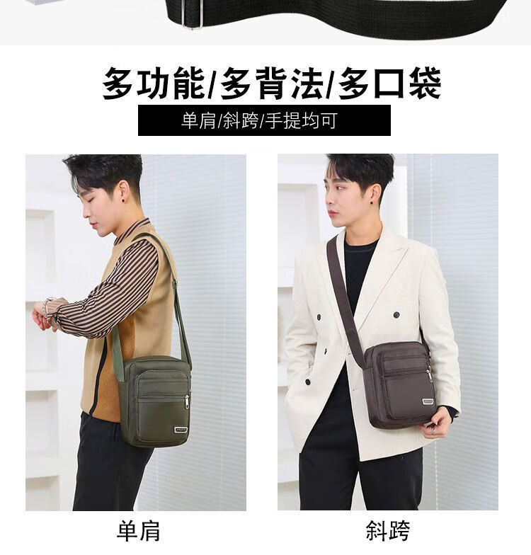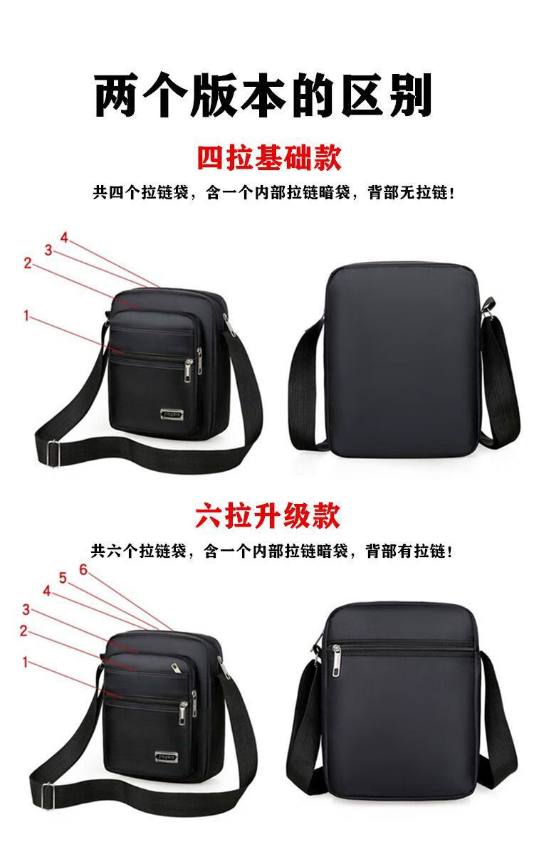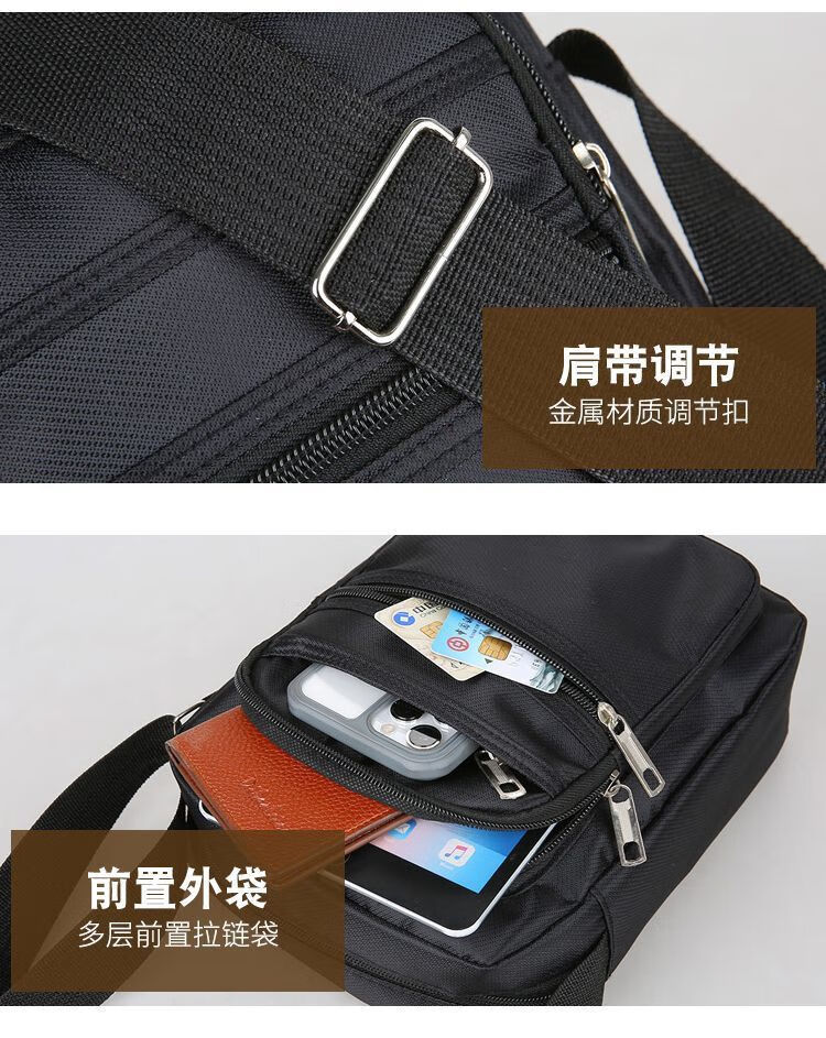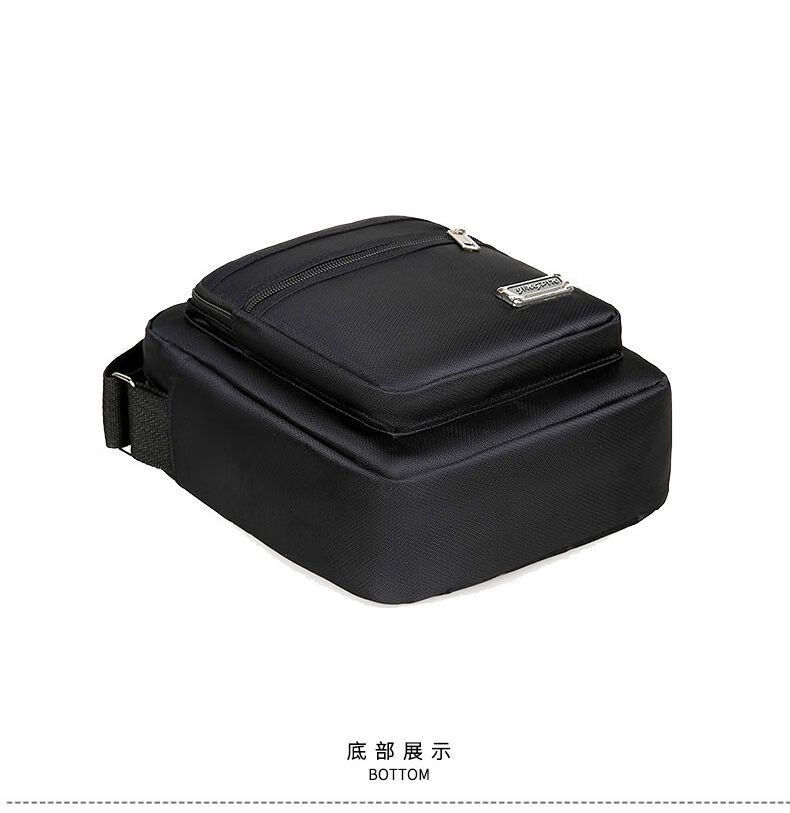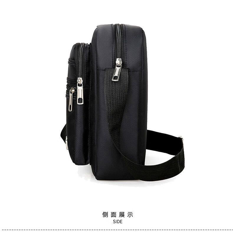 韩版休闲大容量多层防水单肩斜跨包男女生意收钱包夏季男士挎包包 六拉链黑色