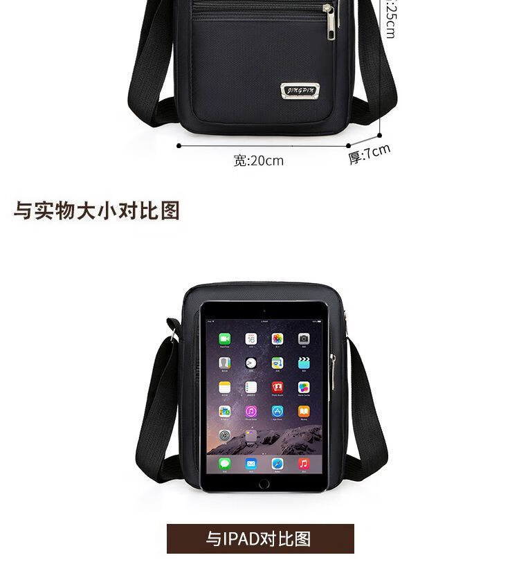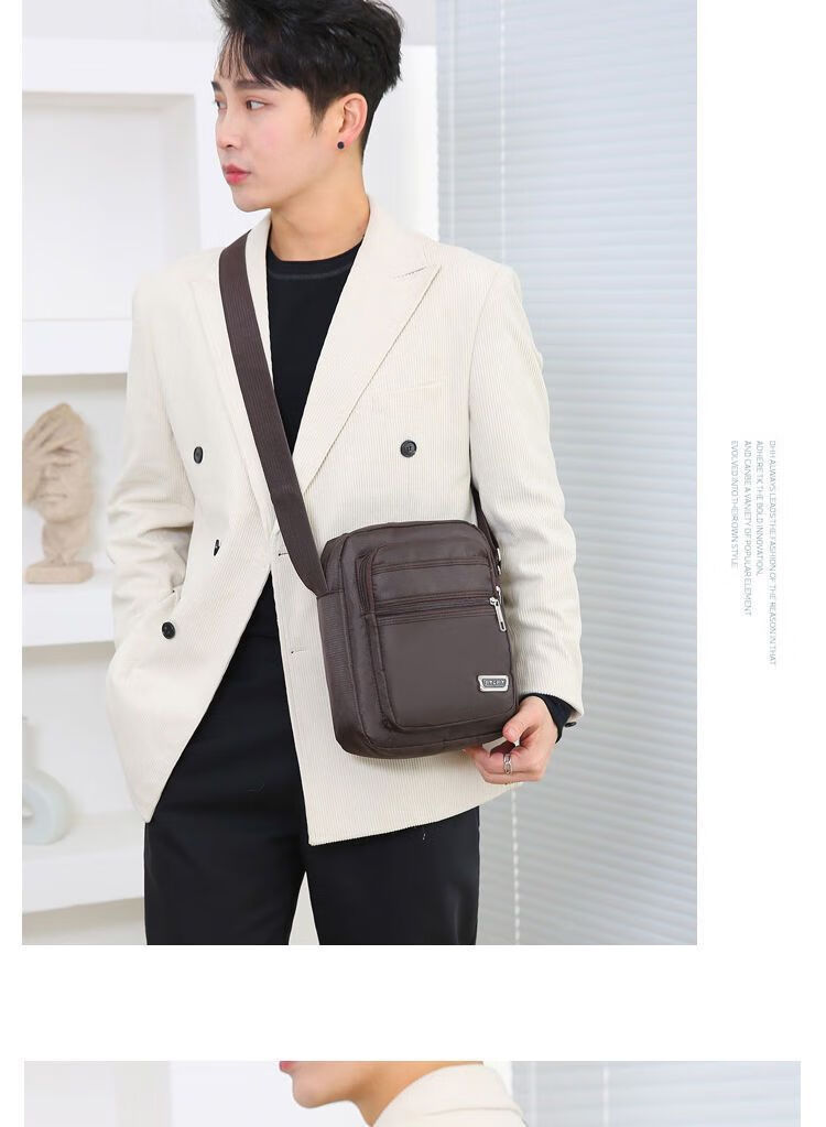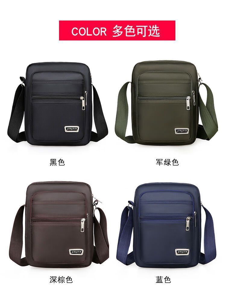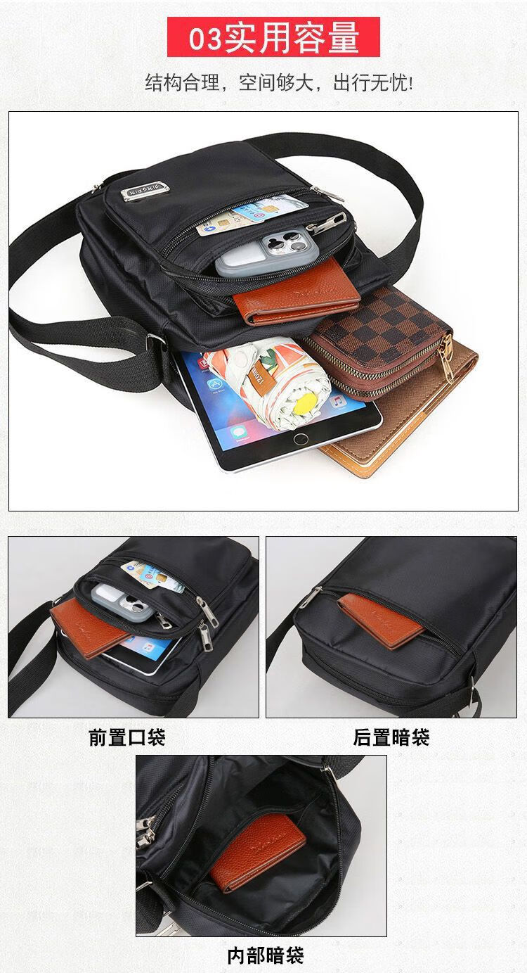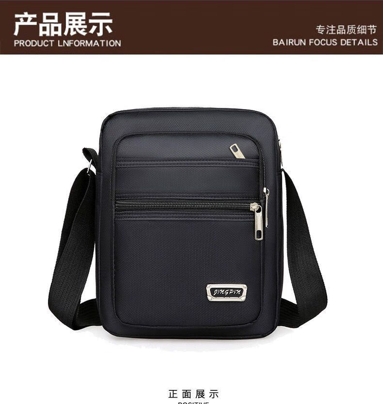 韩版休闲大容量多层防水单肩斜跨包男女生意收钱包夏季男士挎包包 六拉链黑色