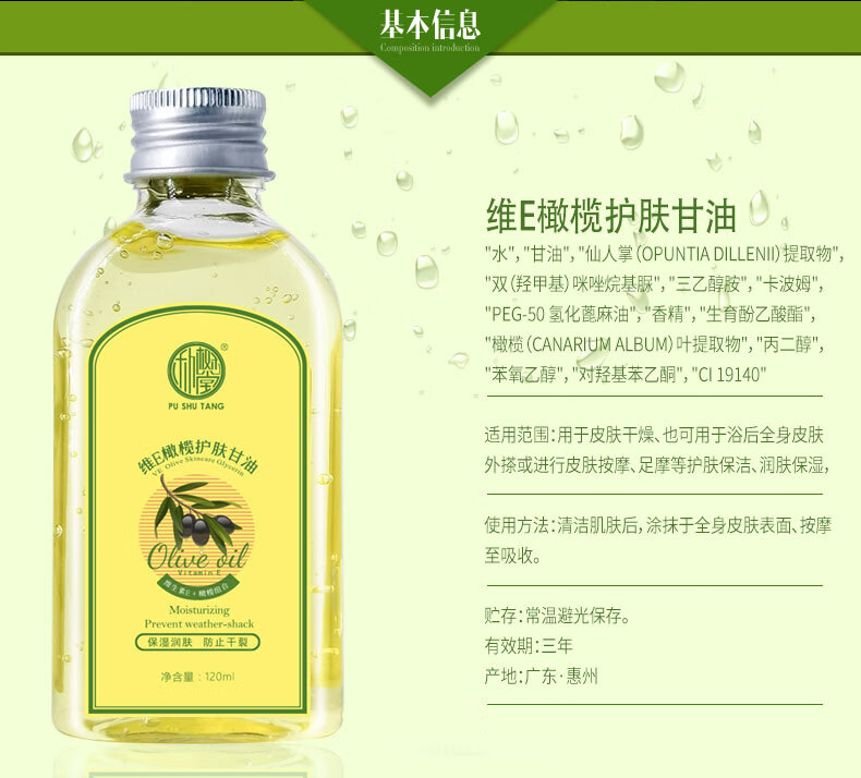 朴树堂维e橄榄护肤甘油防止干裂皮肤干燥足摩护肤润肤保湿 120ml 1瓶