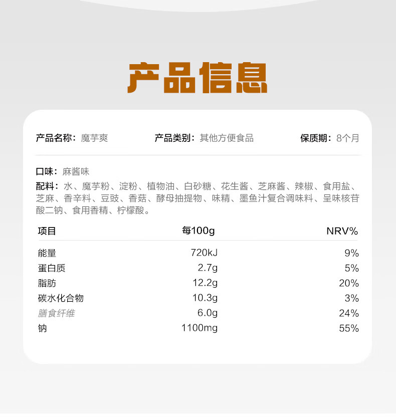 卫龙 麻酱魔芋爽 素毛肚180g/袋 老北京口味 辣条 休闲零食 约12小包