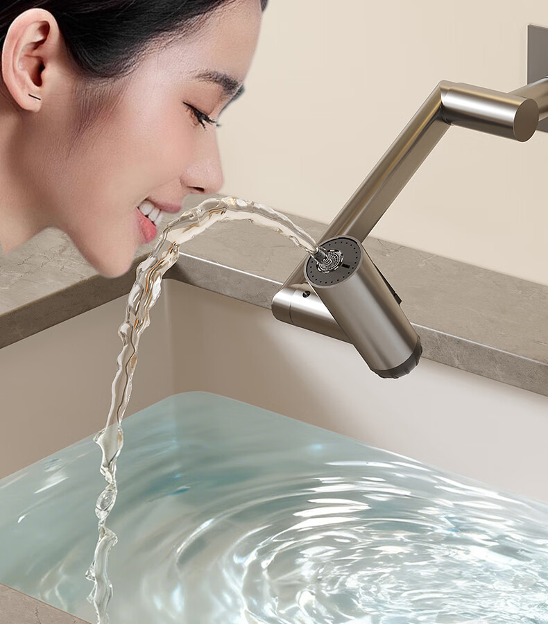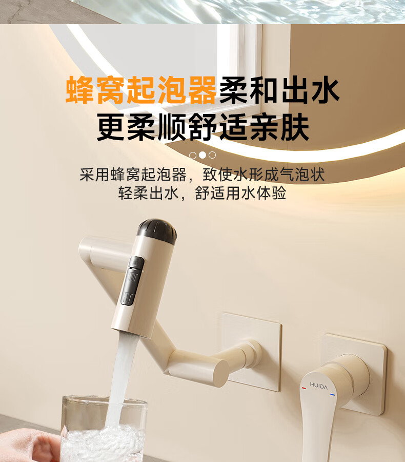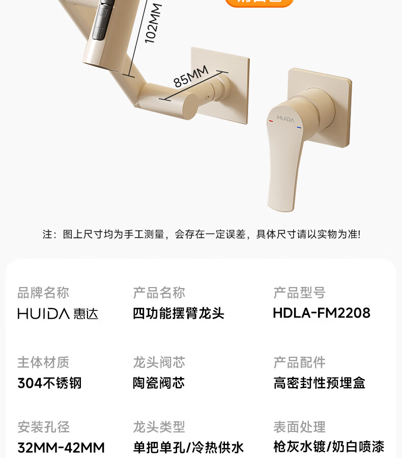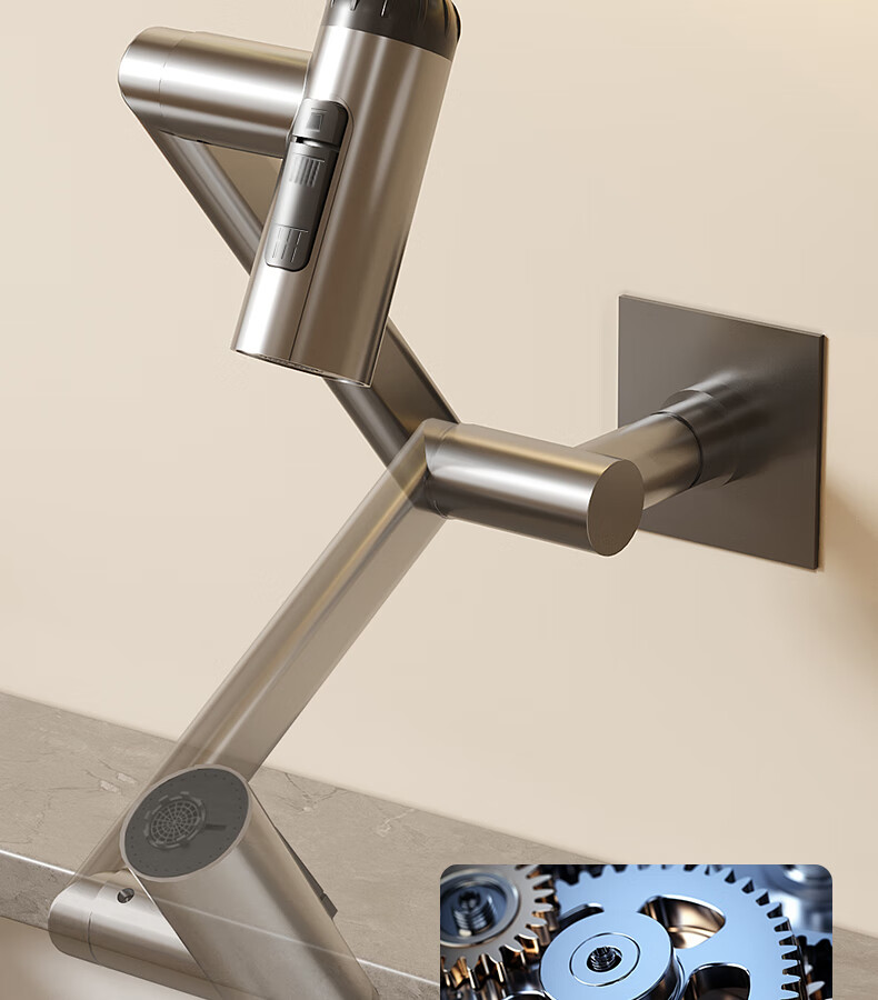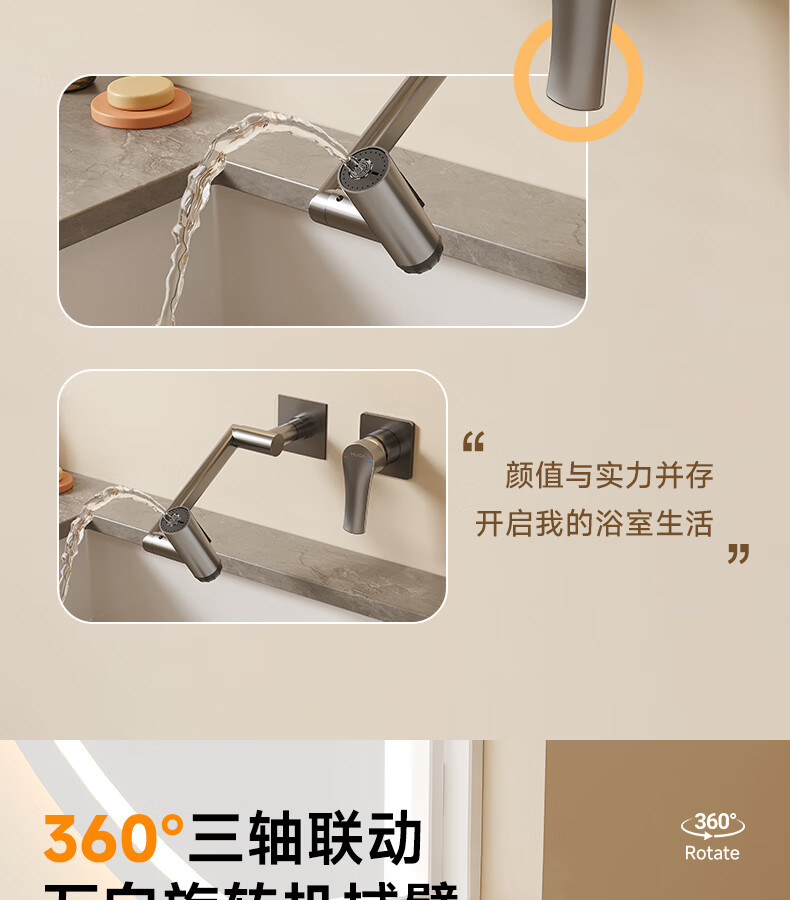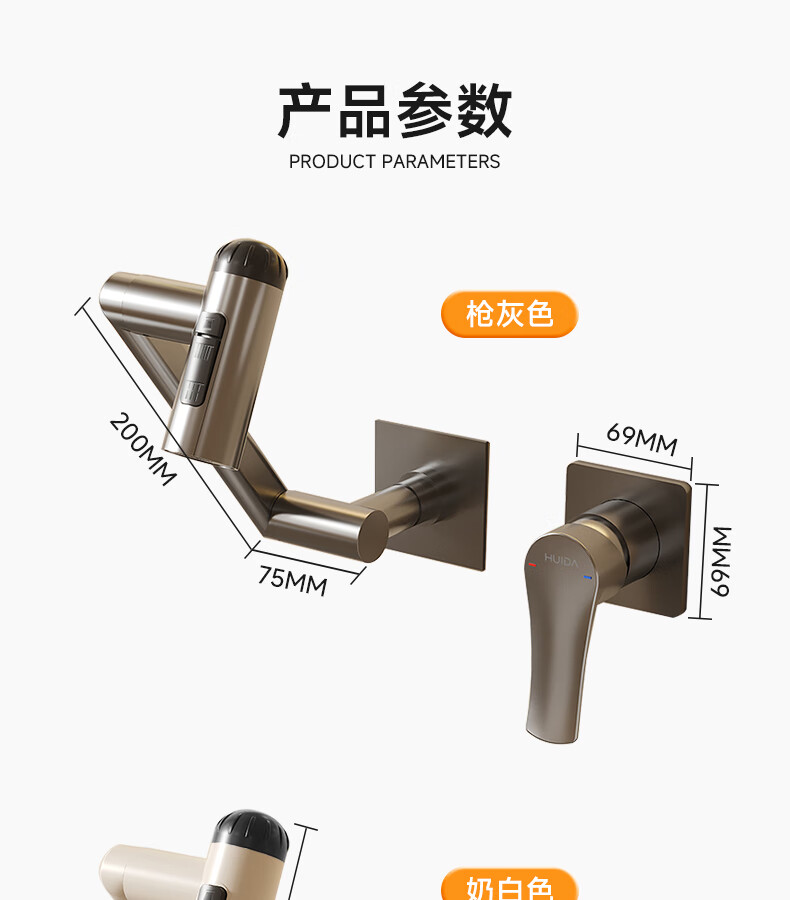 惠达(HUIDA)入墙式机械臂万向旋转水龙头嵌入式招财猫冷热隐藏式墙排暗装龙头 【机械臂·万向】枪灰色四出水FM2208